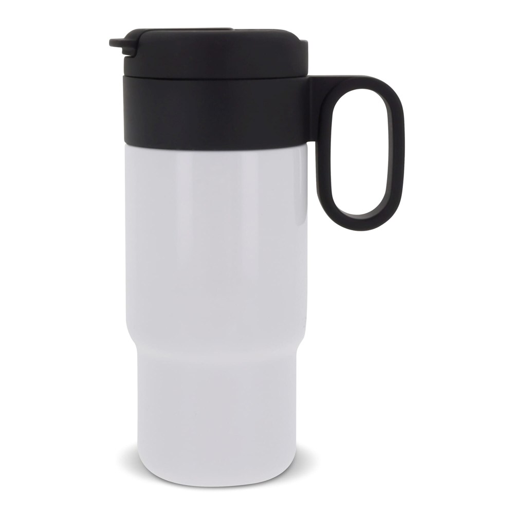 Dubbelwandig vacuüm geïsoleerde beker uit de Toppoint design 'Flow' serie. De mok met klapdeksel is 100% lekvrij en eenvoudig mee te nemen. Zowel de binnenwand als de buitenwand van de mok bestaan uit RVS en is van zeer hoogwaardige kwaliteit. Daardoor blijft het drinken langer op de gewenste temperatuur. Het handvat maakt het eenvoudiger om de fles te dragen. Dranken blijven tenminste 12 uur warm of 24 uur koud. Wordt geleverd in een geschenkverpakking.