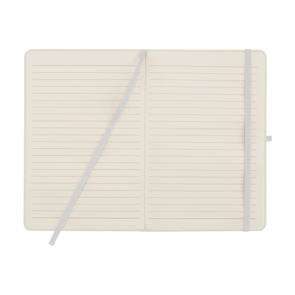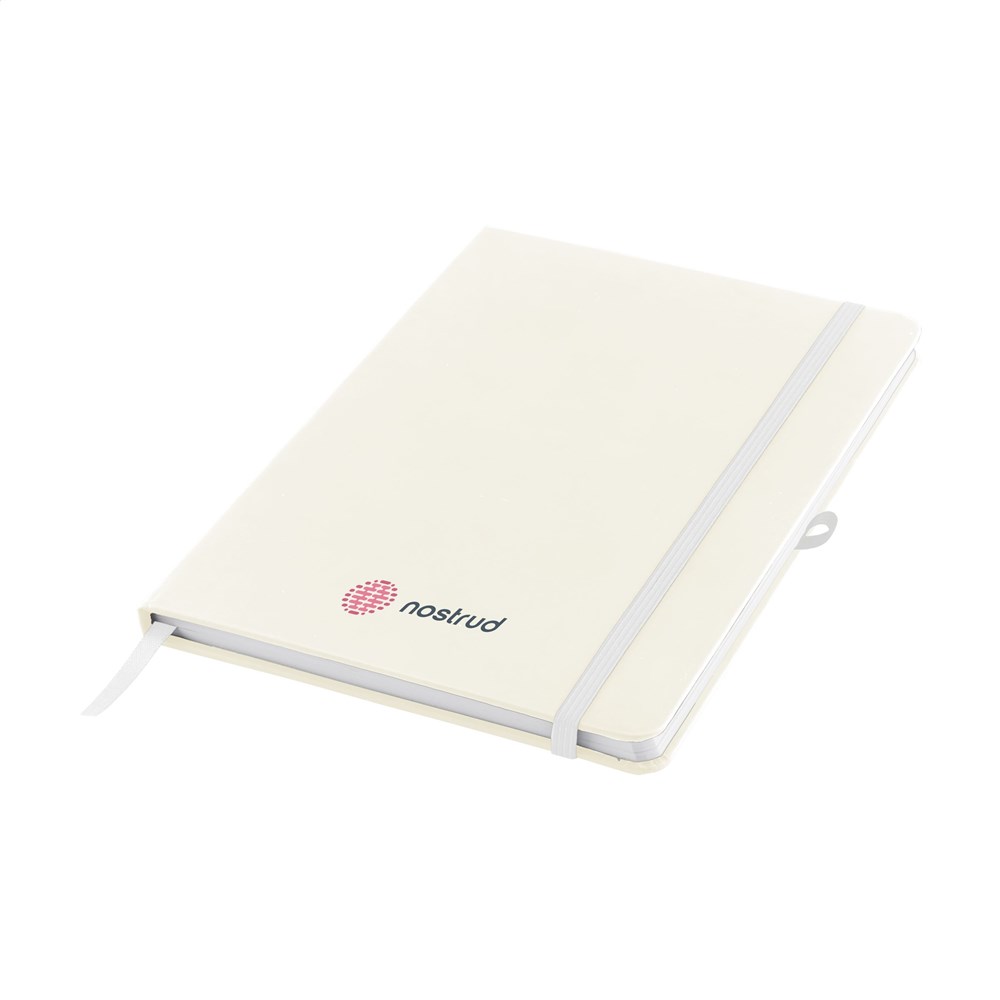 WoW! Praktisch notitieboek in A5-formaat. Met harde RPET-cover en ca. 80 vel/160 pagina's crèmekleurig, gelinieerd papier (70 g/m²). Met handige sluitelastiek, leeslint en pennenlus.
