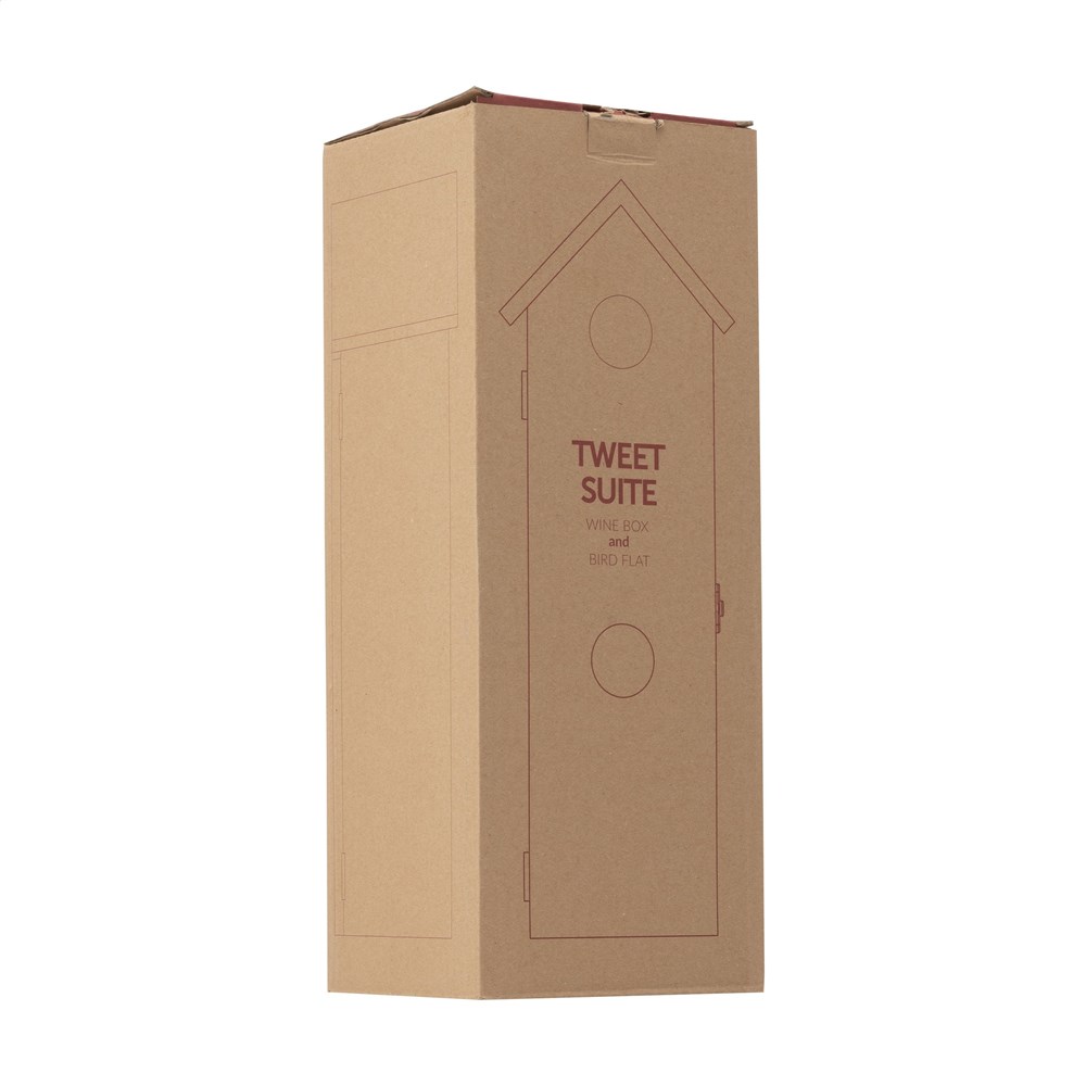 Rackpack Tweet Suite: een wijnkist en een vogelhuisje in één. Door dit wijnkistje op te hangen in je achtertuin, aan een boom of aan een paal creëer je een mooi vogelhuisje om allerlei vogelvrienden aan te trekken. De Tweet Suite brengt vreugde voor jou en de vogels! Rackpack: een wijngeschenkkist van FSC 100% gecertificeerd hout met een nieuw tweede leven! • geschikt voor één fles wijn • 8-10 mm dennenhout • wijn niet inbegrepen. Per stuk in kraft doos.