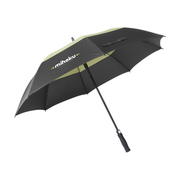 WoW! Paraplu met een bespanning in 2 kleuren, gemaakt van 190T RPET polyester. Deze opvallende paraplu heeft een extra grote schermdoorsnede van maar liefst 120 cm. Met automatische telescoopvering (auto-open), glasvezel frame en steel, EVA soft foam handgreep en klittenblandsluiting. Deze paraplu is deels gemaakt van gerecylede PET-flessen.