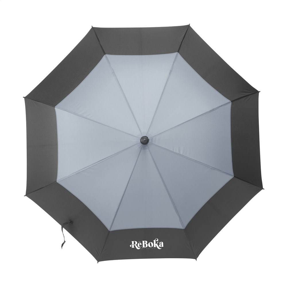 WoW! Paraplu met een bespanning in 2 kleuren, gemaakt van 190T RPET polyester. Deze opvallende paraplu heeft een extra grote schermdoorsnede van maar liefst 120 cm. Met automatische telescoopvering (auto-open), glasvezel frame en steel, EVA soft foam handgreep en klittenblandsluiting. Deze paraplu is deels gemaakt van gerecylede PET-flessen.