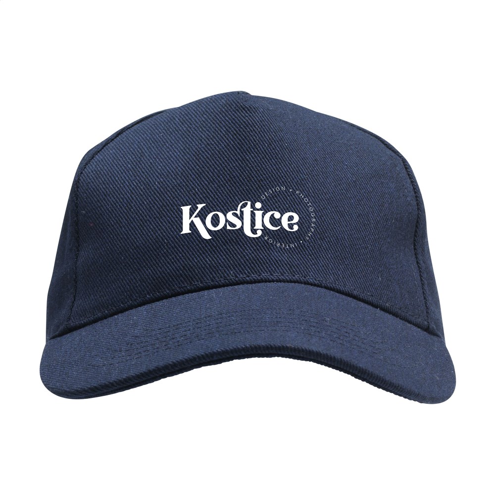 WoW! Comfortabele cap van extra zware kwaliteit: van 60% gerecycled katoen en 40% gerecycled polyester. Met voorgevormde klep en verstelbare, metalen clipsluiting aan de achterzijde. Deze cap met 5 panels heeft een gebogen klep, geborduurde oogjes voor ventilatie.