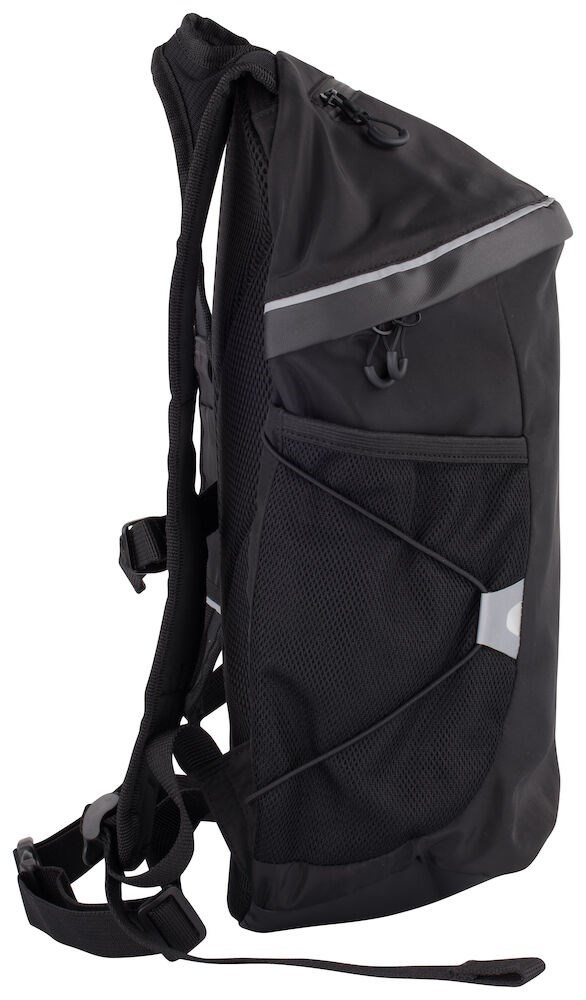 Lichtgewicht en flexible rugzak ideaal te gebruiken bij een actieve levenstijl. De tas is voorzien van drie grote compartimenten met een extra mesh zak met rits. Eén compartiment zit verborgen onder de schouderband. Verder is de tas voorzien van o.a. functionele zakken bovenop en twee ruime mesh zakken aan de zijdes met elastieke banden voor het opbergen van spullen die binnen handbereik moeten blijven. De tas is uitgerust met een band die om de middel bevestigd kan worden zodat de tas op zijn plek blijft. Ook tijdens meer intensieve bewegingen. Afgewerkt met reflecterende details voor betere zichtbaarheid. Afmetingen en volume: 41x23x14cm ≈ 12L