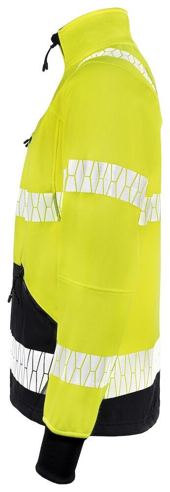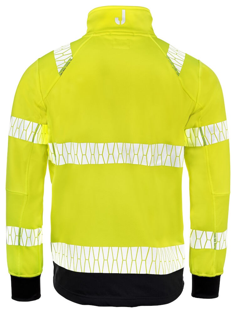 Geavanceerde jas in 3-laags materiaal met birdseye breiwerk aan de buitenkant, een wind- en waterafstotend membraan en fleece aan de binnenkant. Het materiaal is licht en glad voor een optimale bewegingsvrijheid. Met een waterkolom van 10.000 mm biedt de jas bescherming tegen wind en lichte regen en heeft bovendien een goed ademend vermogen. De naden van de jas zijn niet getapet. De jas is hoogwaardig afgewerkt met extra versteviging in zwart op de meest kwetsbare delen en zwarte geribde manchetten op de mouwen. De jas is verder voorzien van onder andere ruime zakken voor met rits, een borstzak met rits en ID-ring voor ID-kaarthouder en een stormklep aan de binnenkant tegen tocht en schaven van de kin. Voor extra zichtbaarheid heeft de jas reflecterende details en zachte reflecterende strepen met het Jobman design op de voorzijde en bovenop de schouders.