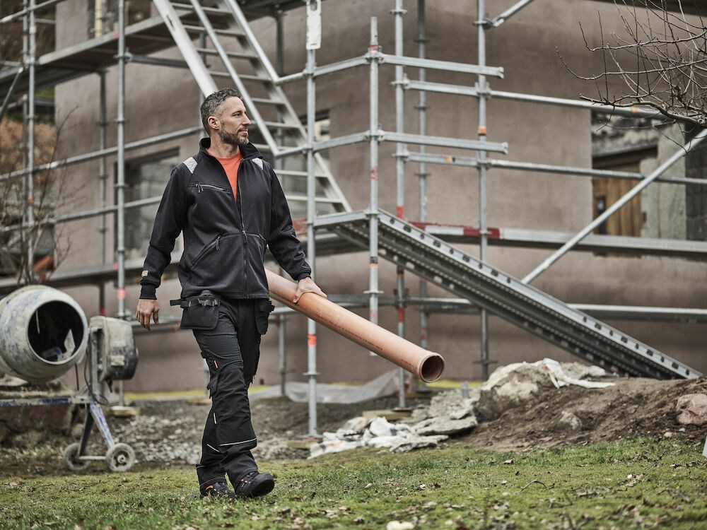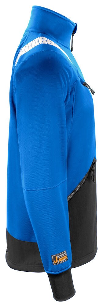 Jas in 3-laags softshell met birdseye breiwerk aan de buitenkant, winddicht en waterafstotend membraan en fleece aan de binnenkant. Een lichtgewicht jas met bewegingsvrijheid. Verstelbaar trekkoord in zoom. Beschermt tegen wind en lichte regen (10.000 mm waterkolom, geen getapete naden) en is goed ademend. Versteviging in zwart materiaal op zichtbare delen. Zwart geribde manchetten. De ruime zakken aan de voorzijde zijn voorzien van een rits. Borstzak met rits en D-ring voor ID-kaart-houder. De ritssluiting voor heeft een stormflap aan de binnenzijde ter bescherming tegen tocht en schaven van de kin. Ritspuller met reflecterende details. Naadloze zachte reflecterende strips in Jobman design op de schouders en onderrug voor optimale zichtbaarheid.