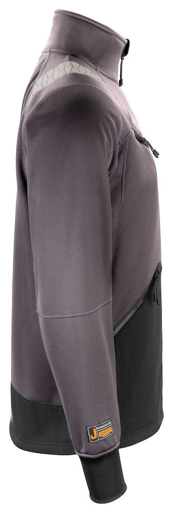 Jas in 3-laags softshell met birdseye breiwerk aan de buitenkant, winddicht en waterafstotend membraan en fleece aan de binnenkant. Een lichtgewicht jas met bewegingsvrijheid. Verstelbaar trekkoord in zoom. Beschermt tegen wind en lichte regen (10.000 mm waterkolom, geen getapete naden) en is goed ademend. Versteviging in zwart materiaal op zichtbare delen. Zwart geribde manchetten. De ruime zakken aan de voorzijde zijn voorzien van een rits. Borstzak met rits en D-ring voor ID-kaart-houder. De ritssluiting voor heeft een stormflap aan de binnenzijde ter bescherming tegen tocht en schaven van de kin. Ritspuller met reflecterende details. Naadloze zachte reflecterende strips in Jobman design op de schouders en onderrug voor optimale zichtbaarheid.
