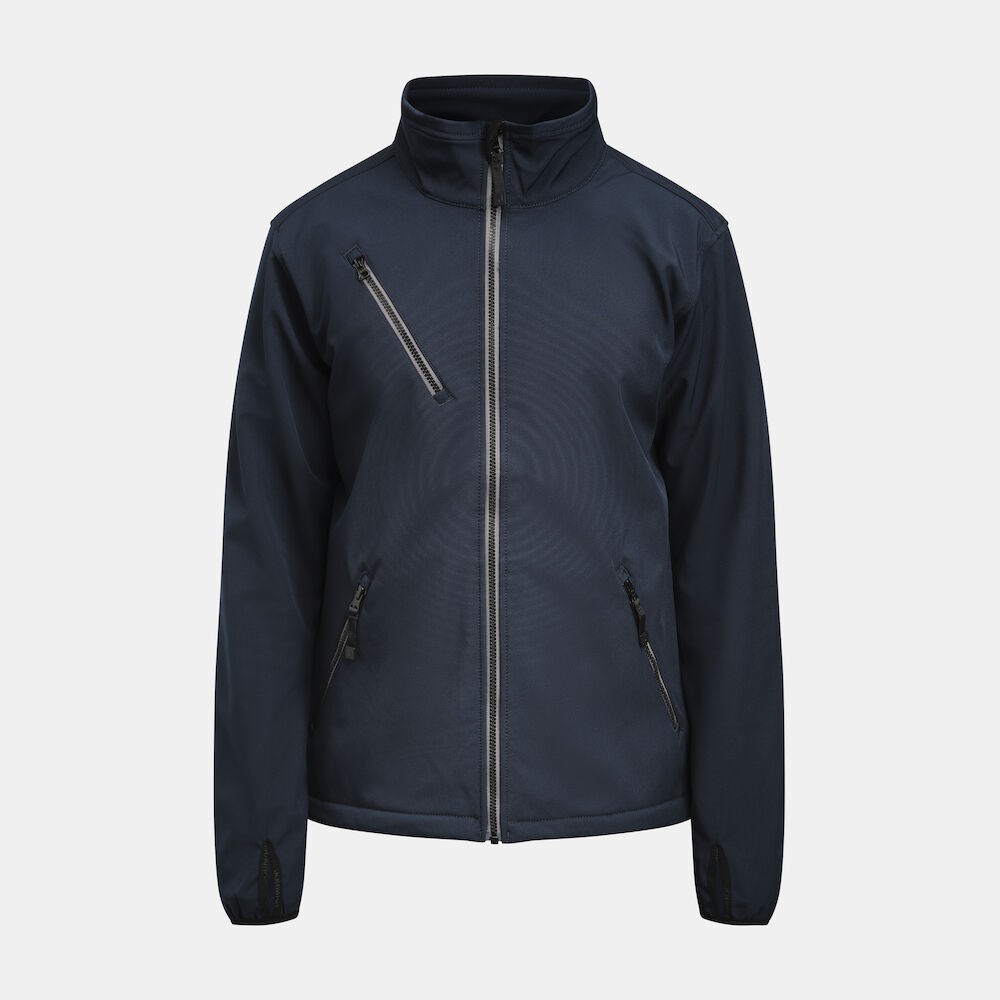 Een winddicht en waterafstotend jack van drielaagse softshell gevoerd met fleece. De jas is voorzien van twee steekzakken met rits, een borstzak met rits en een binnenzak. Verder is de jas professioneel afgewerkt met duimgaten, YKK rits aan de voorzijde en is verstelbaar bij de taille middels een trekkoord. De jas heeft een goede prijs-kwaliteitverhouding en is verkrijgbaar in 10 commerciële kleuren, waarmee de jas breed inzetbaar is in tal van doelgroepen.