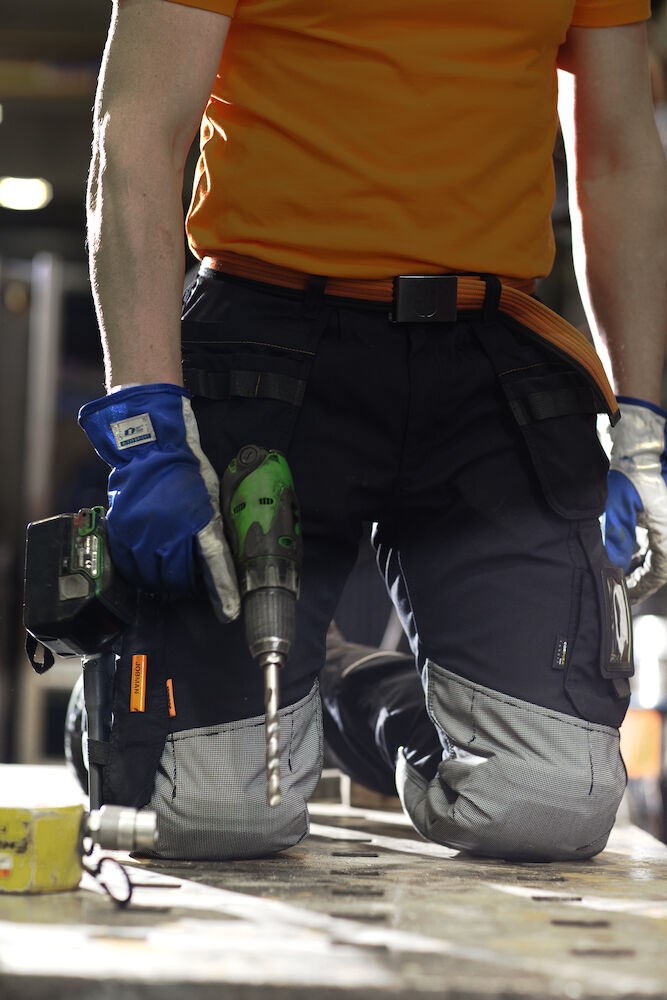 Technische werkbroek van hoogwaardig STAR polyamide met zachte binnenkant en slijtvaste, sneldrogende eigenschappen. De broek is voorzien van diverse zakken zoals ruime holsterzakken, voorzakken, verstevigde achterzakken, een duimstokzak met mes-bevestigingsknoop en een zak op het been met diverse compartimenten. Verder is de broek professioneel afgewerkt met een hamerlus, reflecterende details en extra riemlussen bij de grootste maten. De voorgevormde knieën zorgen voor een optimaal draagcomfort. De broek is verstevigd met Cordura® bij de knieën en polyamide bij de enkels. Kniestukken kunnen op twee hoogtes geplaatst worden voor optimale bescherming.