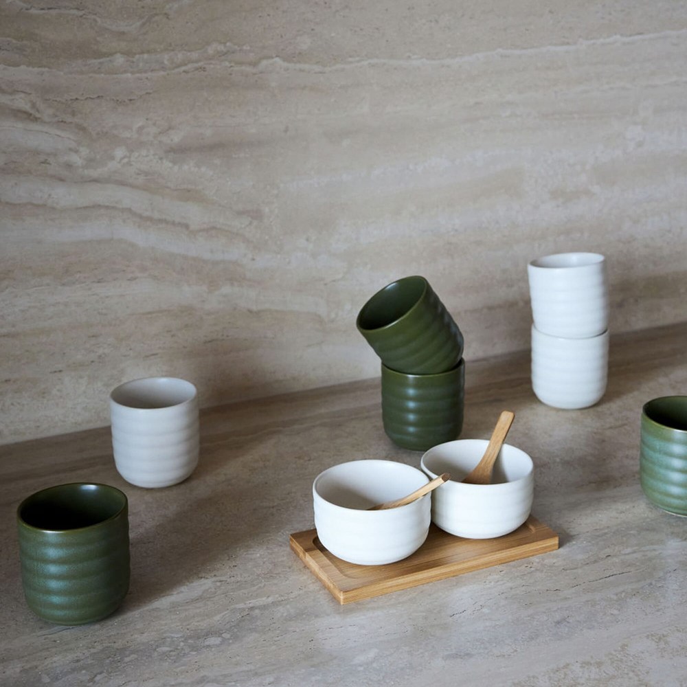 Sagaform Ellen set van 2 kommetjes met bamboe lepeltjes en tray