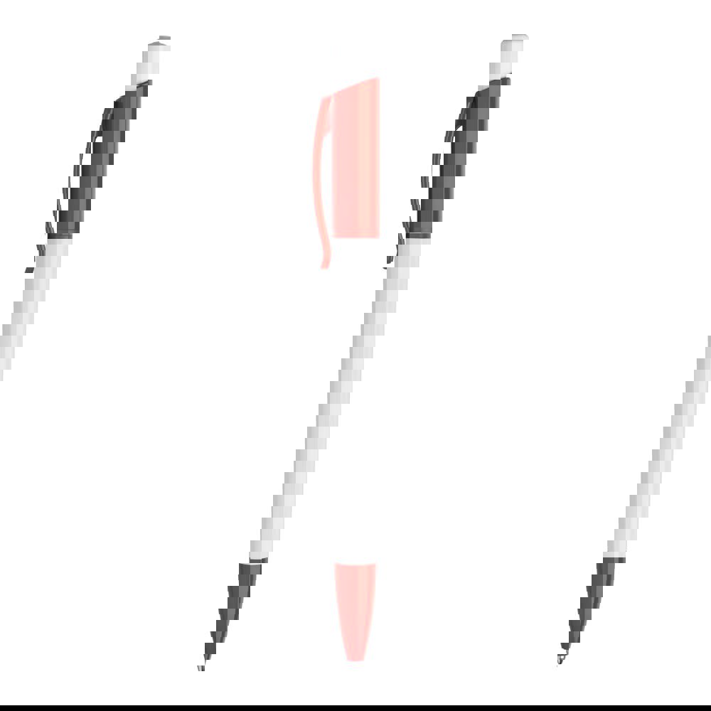 De Kamal balpen in hardcolour heeft een groot drukoppervlak op zowel de clip als de barrel. Met combinatie van een witte barrel en drukker en een gekleurde clip. Inclusief een drukmechaniek en een blauw schrijvende X20 vulling. De pen is gemaakt van ABS kunststof, geproduceerd in Europa.