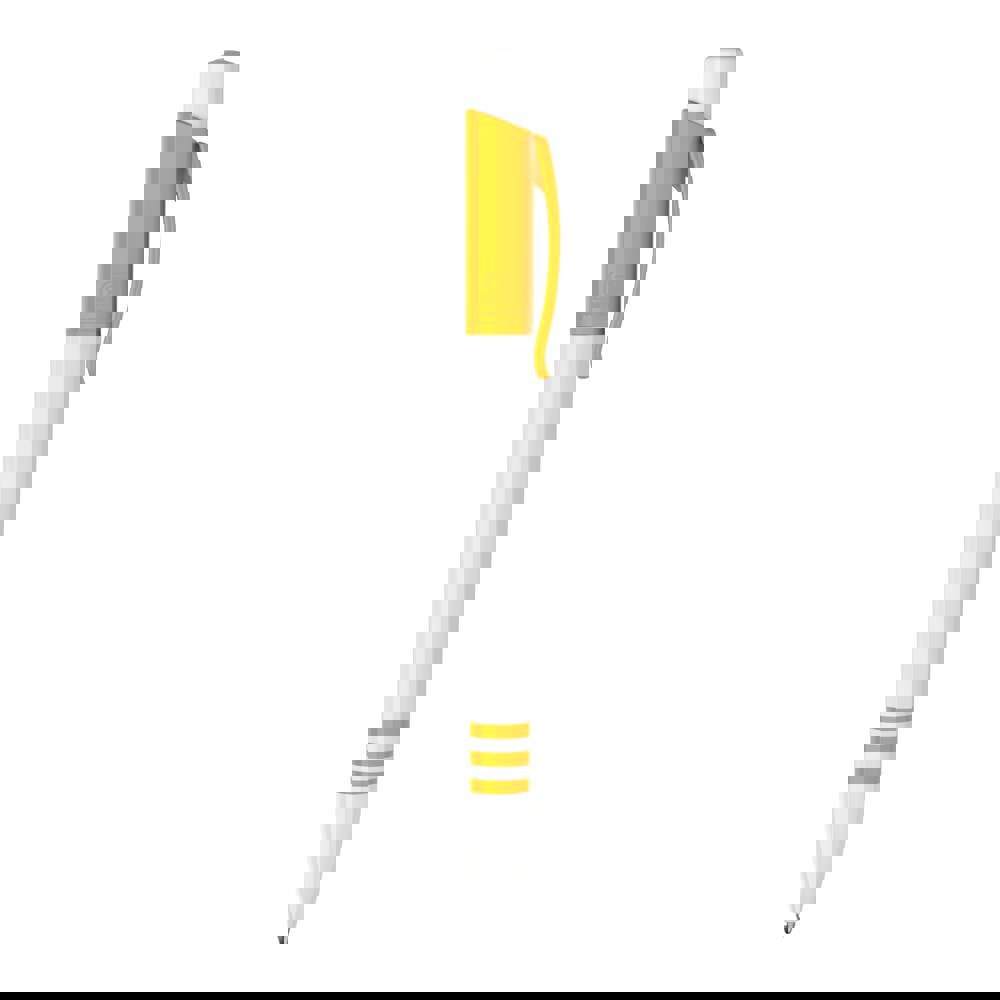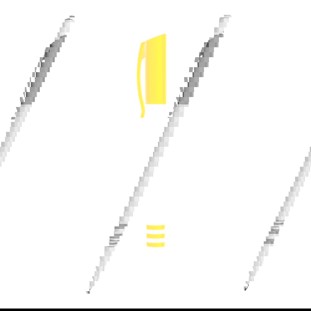 De Tropic balpen in hardcolour heeft een groot drukoppervlak op zowel de clip als de barrel. Met combinatie van een witte barrel en drukker en een gekleurde clip. De barrel bevat drie gekleurde ringen in dezelfde kleur als de clip. Inclusief een drukmechaniek en een blauw schrijvende Jumbo vulling. De pen is gemaakt van ABS kunststof, geproduceerd in Europa. Kleur combinaties voor deze pen zijn mogelijk vanaf 5.000 stuks.