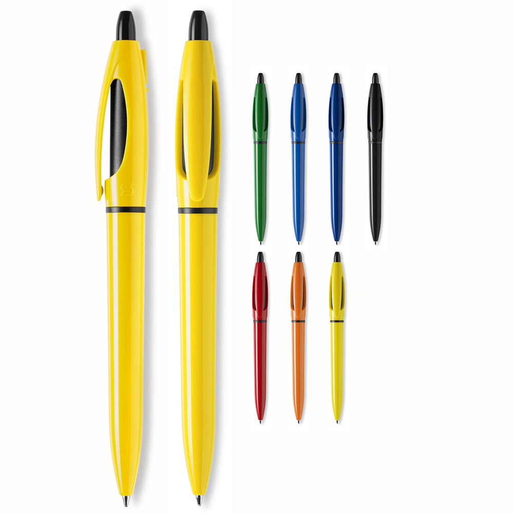 Hardcolour balpen S! Extra met gekleurde barrel, drukker en clip en bevat een zwarte ring en tip. De vulling is een X20 vulling en bevat blauw schrijvende inkt. De barrel kan eenvoudig worden voorzien van een bedrukking. Het heeft een drukmechaniek en is gemaakt van ABS. Geproduceerd in Europa. Kleur combinaties voor deze pen zijn mogelijk vanaf 5.000 stuks.