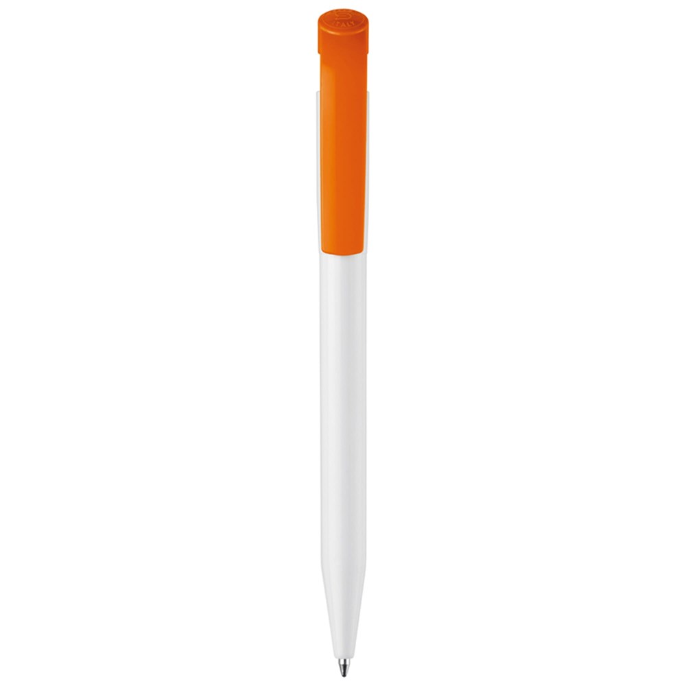 Moderne hardcolour S45 balpen met gebogen clip. Door het grote drukoppervlak is het een uitermate geschikt promotieartikel. Het bevat een drukmechaniek en een blauw schrijvende X20 vulling. De pen is gemaakt van ABS kunststof, geproduceerd in Europa. Kleur combinaties voor deze pen zijn mogelijk vanaf 5.000 stuks.