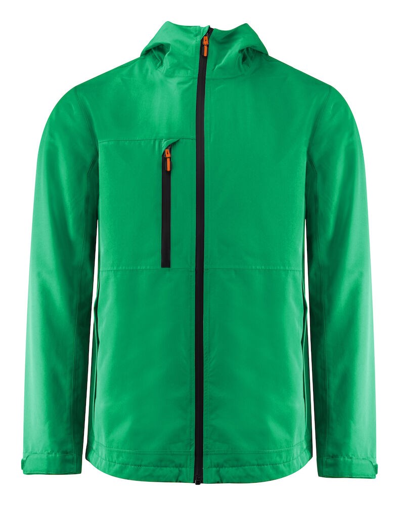 Functionele shell jas met getapete naden. Waterdichte ritssluiting vooraan en aan de borstzak. Omgedraaide nylon ritssluitingen aan de zijzakken. Aanpasbare velcrosluiting aan de manchetten. Mesh binnenvoering met borduurrits. De capuchon en de zoom zijn aanpasbaar met elastische trekkoorden. Zipper pullers in contrasterende kleur. Deze kunnen indien gewenst vervangen worden door één van de andere beschikbare kleuren. Dit artikel is verpakt is een composteerbare polybag.