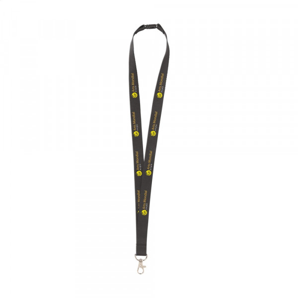 Polyester lanyard met metalen karabijnhaak en veiligheidssluiting.meer