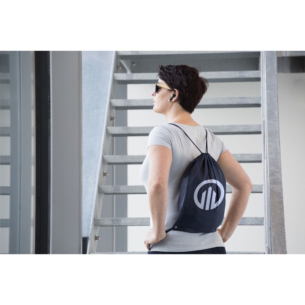 Rugzak van 210D polyester. Met aanrijgkoorden. Inhoud ca. 8 liter.