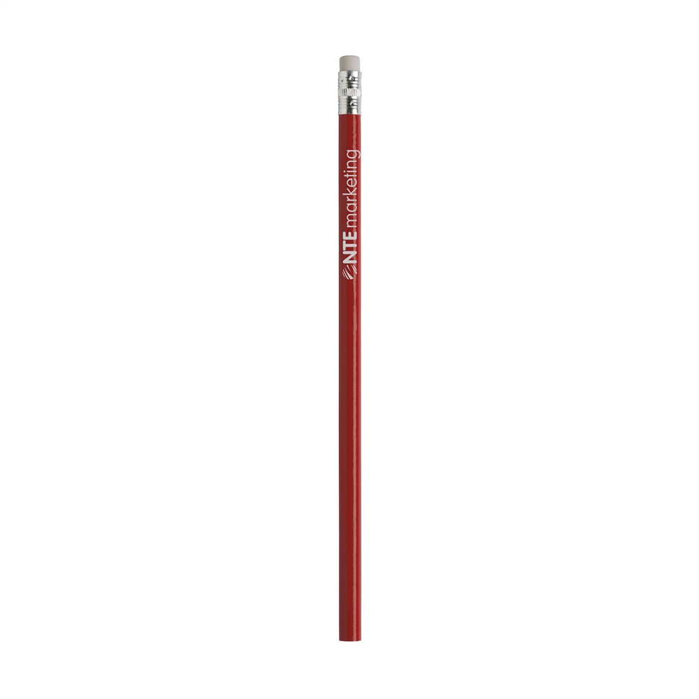 Ongeslepen, houten (HB) potlood met gum. Gelakt.