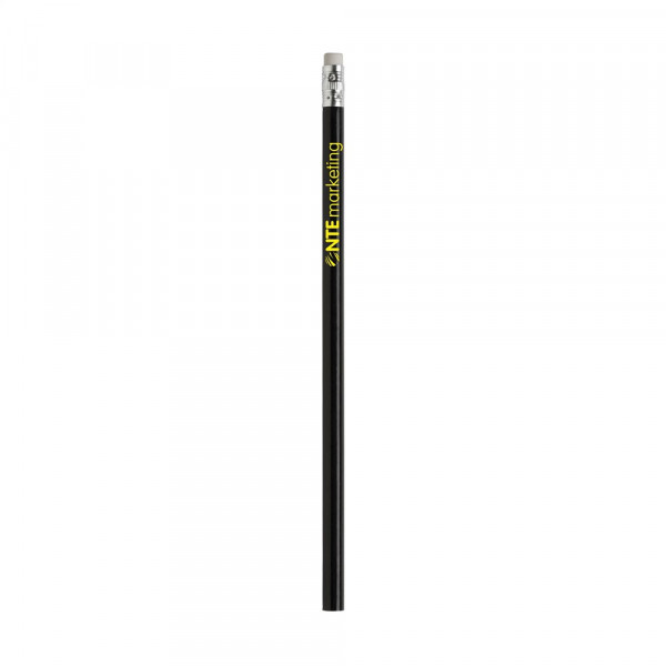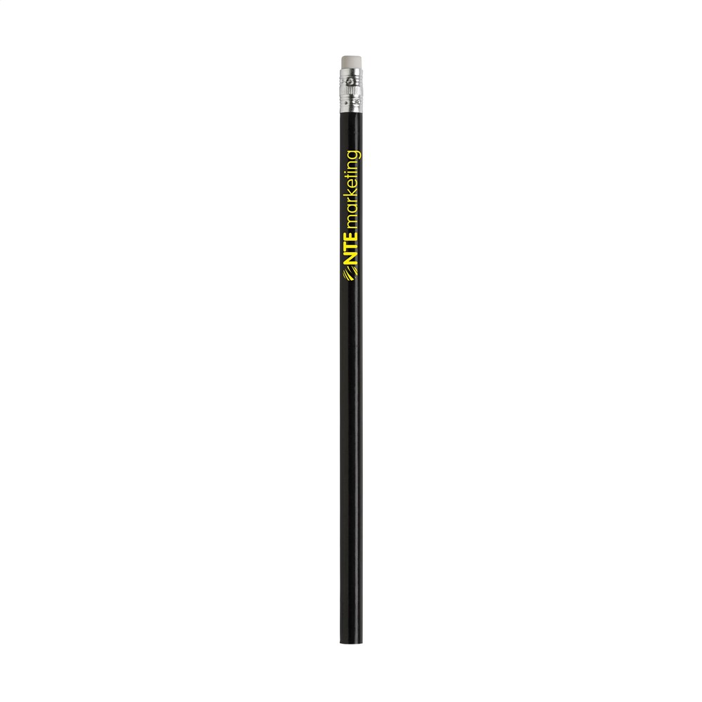 Ongeslepen, houten (HB) potlood met gum. Gelakt.