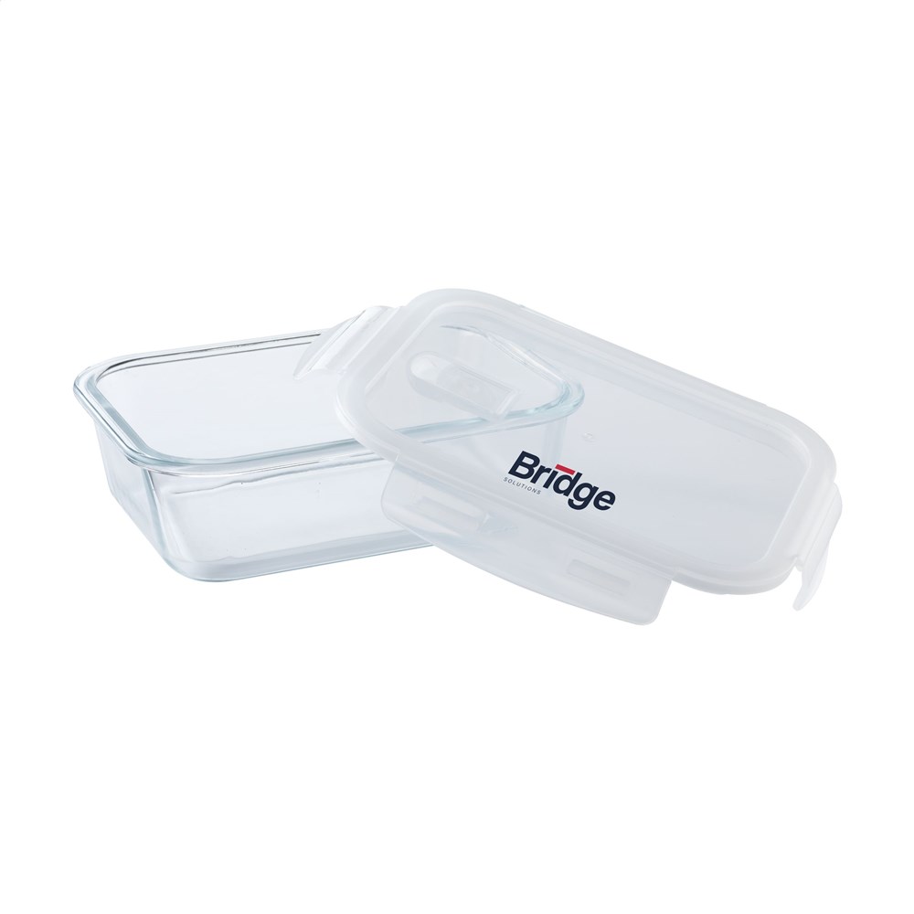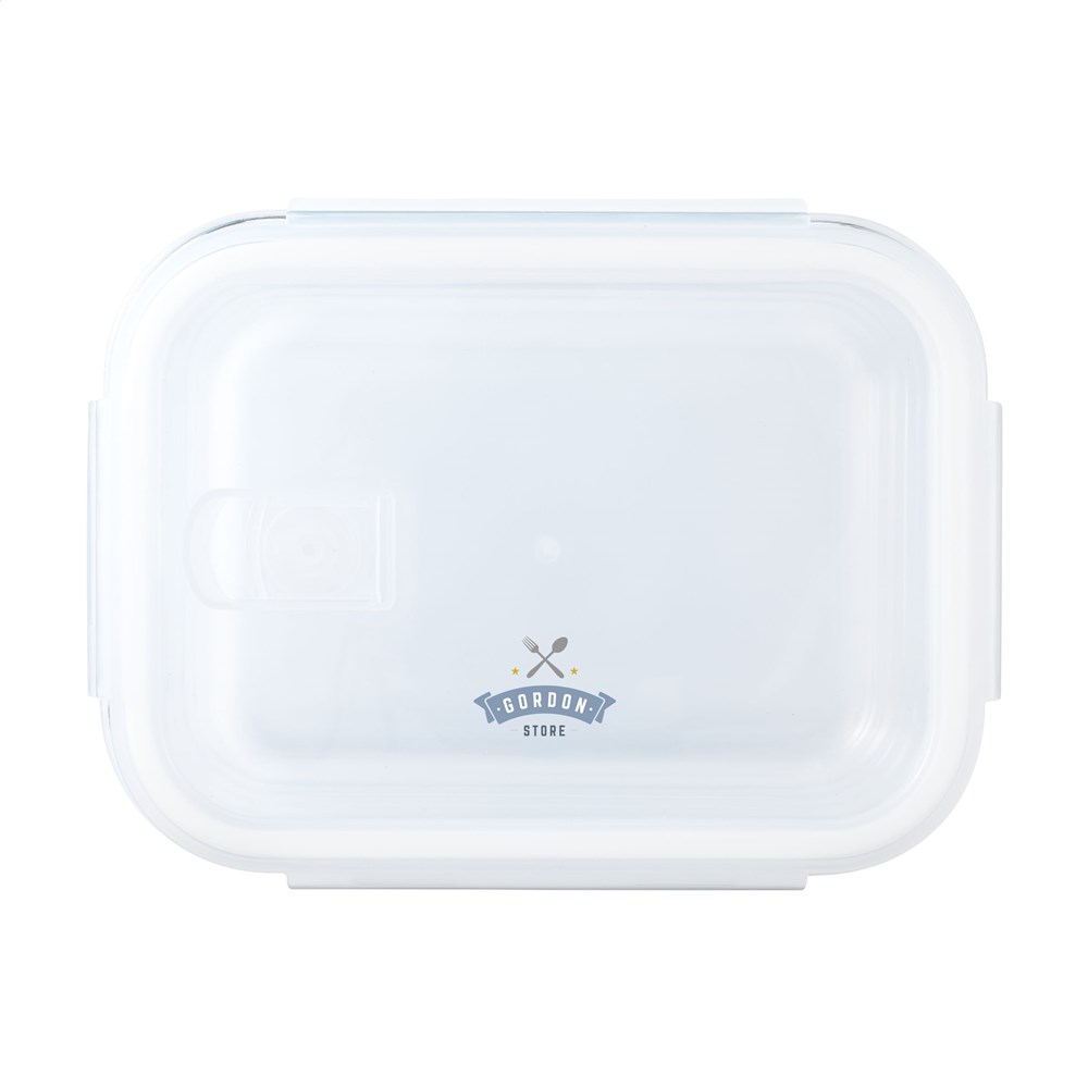 Lunchbox van hoogwaardig borosilicaatglas dat bestand is tegen hoge temperatuurverschillen. Met een PP kunststof deksel dat perfect sluit dankzij de siliconen afsluitring aan de onderzijde. Hierdoor kan de inhoud luchtdicht bewaard worden. Dus ook geschikt als vershoudbox. Alleen het glas is vaatwasserbestendig en geschikt voor gebruik in de oven. Het complete product is diepvries- en magnetronbestendig. Per stuk in kraft doos.