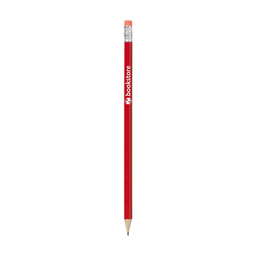 Geslepen, houten (HB) potlood met gum.
