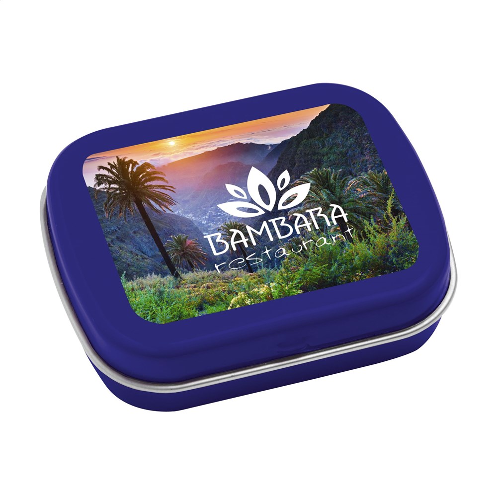 Uitdeelblikje met ca. 25 g frisse pepermuntjes.