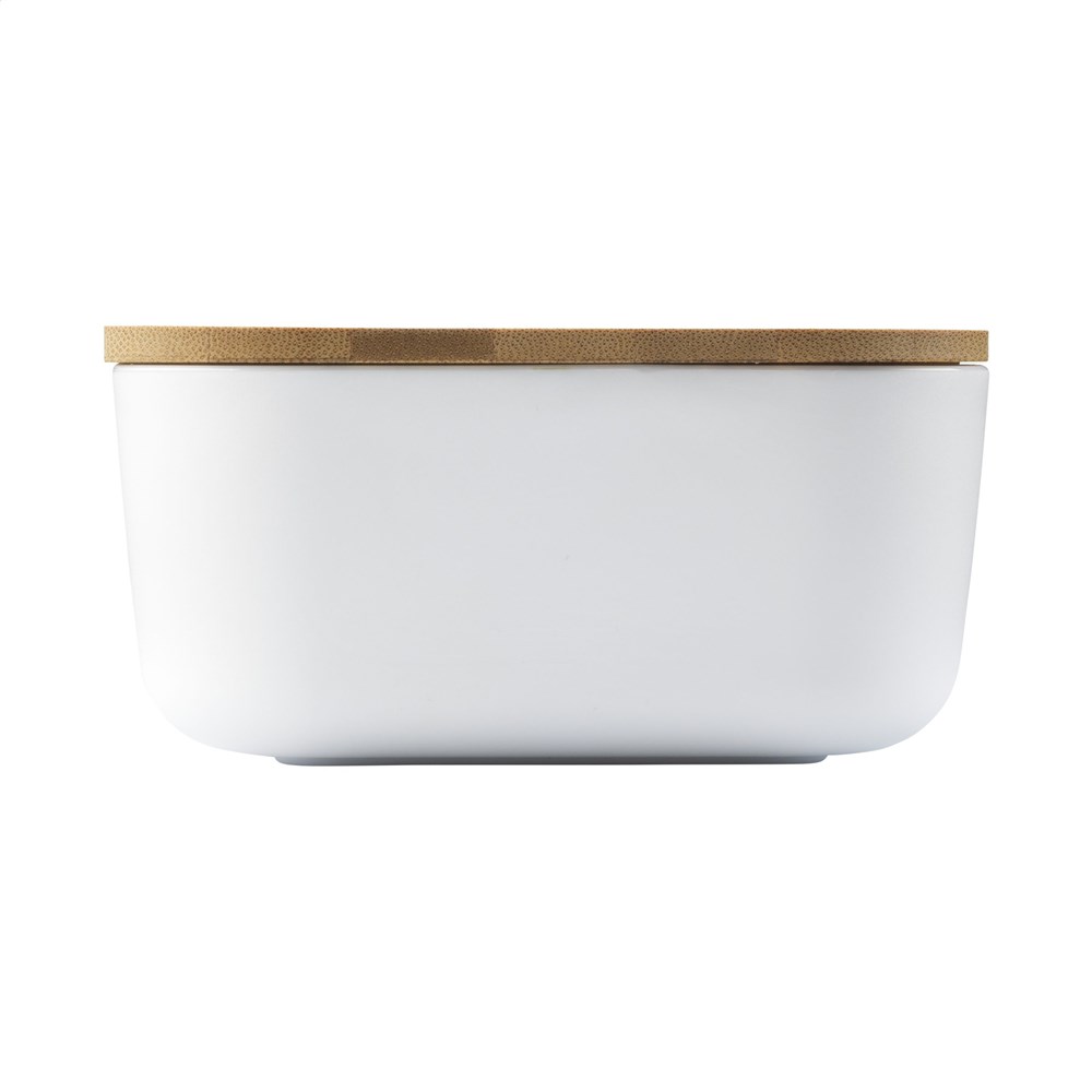 Royale lunchbox van PP kunststof. Het deksel is van natuurlijk bamboe. Inclusief sluitelastiek.