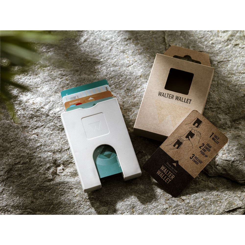 Kaarthouder gemaakt van ABS plastic dat voor 100% recyclebaar is. Dun, minimalistisch en super licht. Geschikt voor het opbergen van 7 passen en briefgeld. Walter Wallets zijn ultradunne kaarthouders gemaakt van gerecyclede materialen. Met het gepatenteerde trap-schuifsysteem worden je pasjes veilig beschermd. Je haalt met de Walter Wallet je pasjes in één handbeweging tevoorschijn en je ziet precies welke pas je moet hebben. Per stuk in kraft doos.