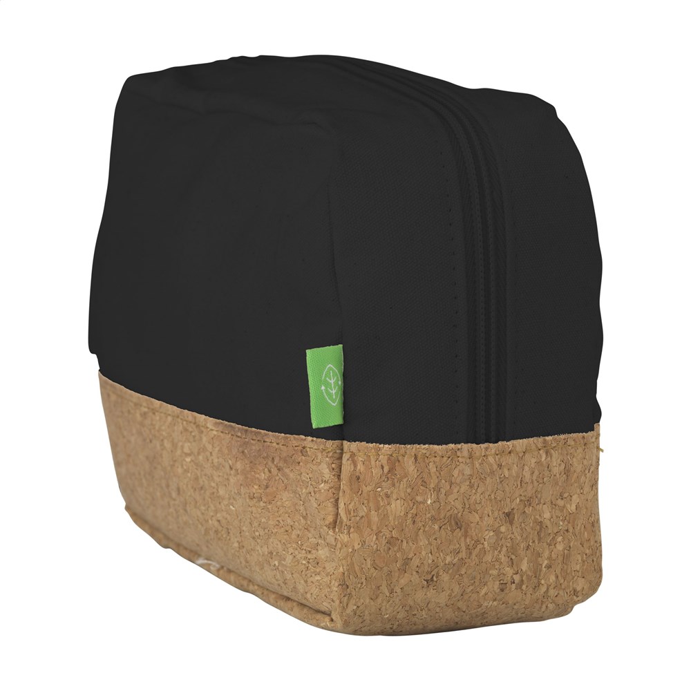 WoW! Toilettas van natuurlijke materialen: organisch canvas en kurk. Met rits, handige draaglus en gevoerd met waterdicht PEVA.