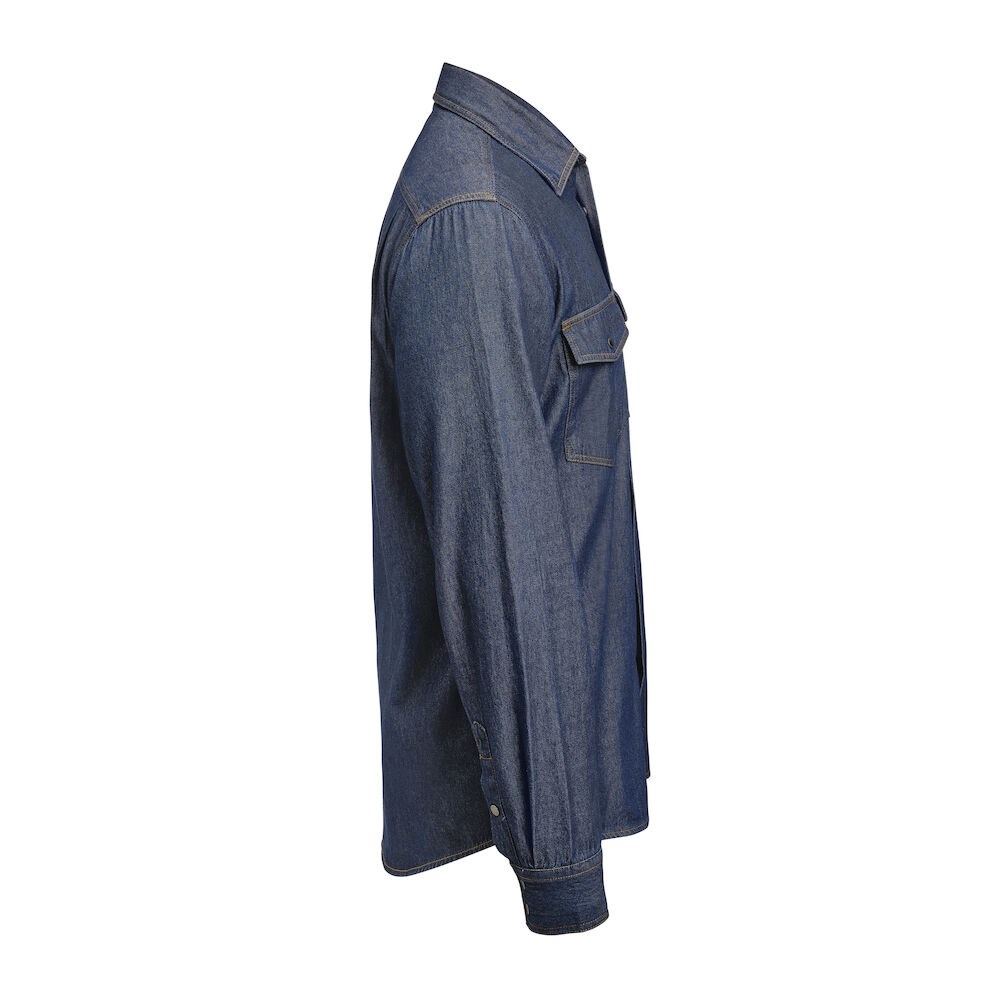 Overhemd met karakteristieke verwassen denimlook en stiksels in contrastkleur. Voorzien van twee borstzakken, waarvan één met een speciale opening voor een pen. Afgewerkt met drukknopen met Jobman branding.