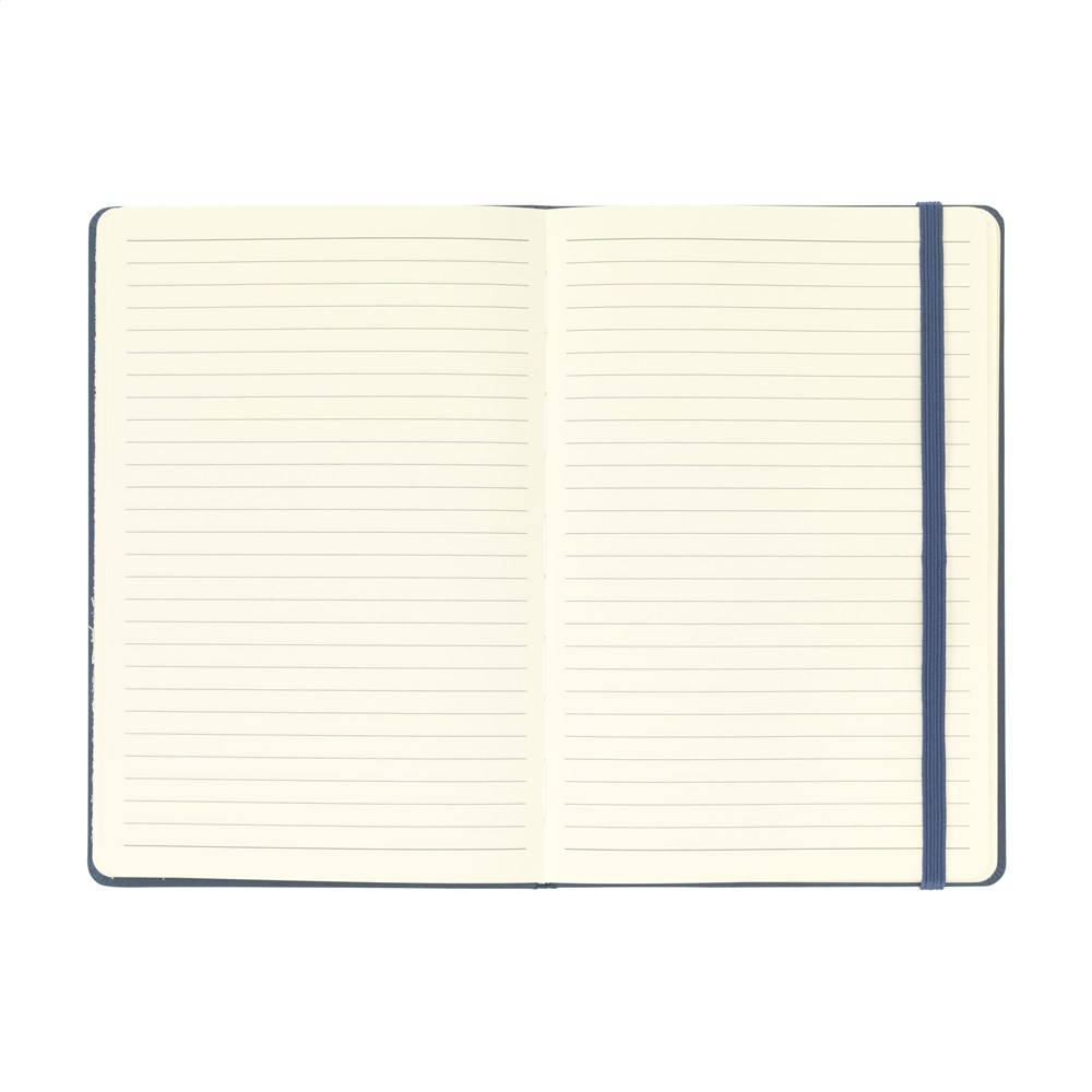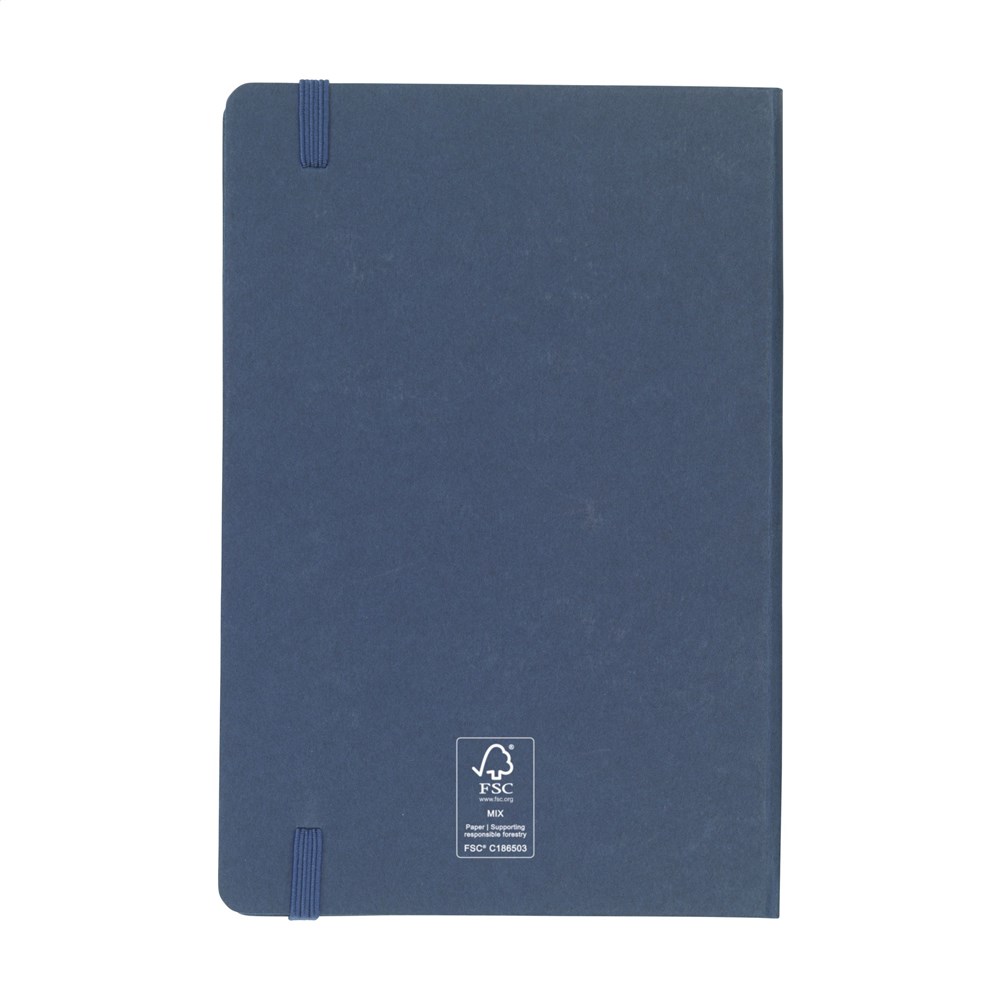 WoW! A5-formaat notitieboek met een cover gemaakt van FSC Mix gecertificeerd karton. Het notitieboek heeft ca. 80 vel/160 pagina's crèmekleurig, gelinieerd FSC Mix gecertificeerd papier (70 g/m²). Met gebonden rug en handige elastische sluiting.