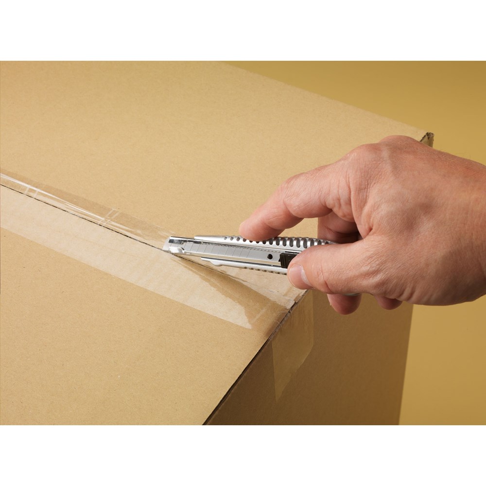 Verstelbaar afbreekmesje van aluminium. Het mesje heeft 12 koolstofstalen lemmeten en is voorzien van een mesbeveiligingsmechanisme. Met ophangoog in de handgreep. Op het bezit en/of dragen van messen of multitools in het openbaar kunnen lokale regels van toepassing zijn.