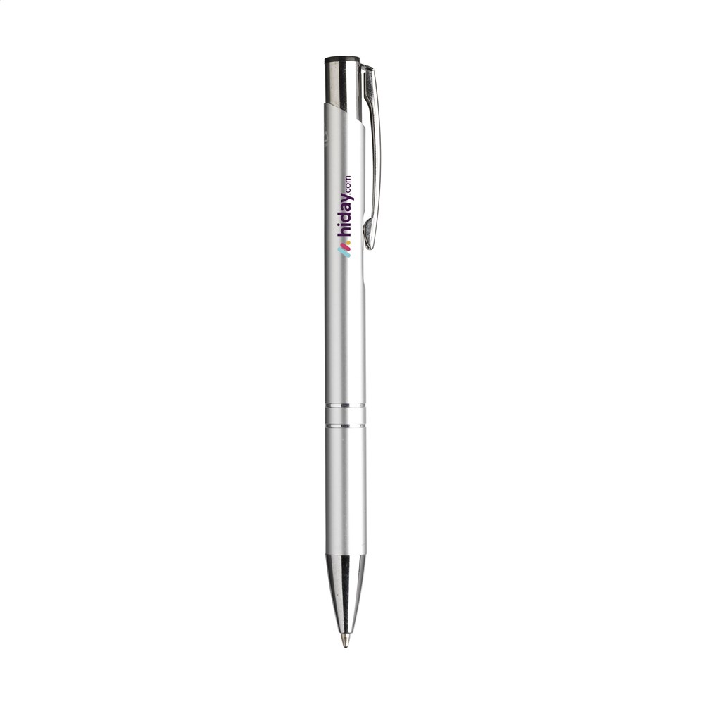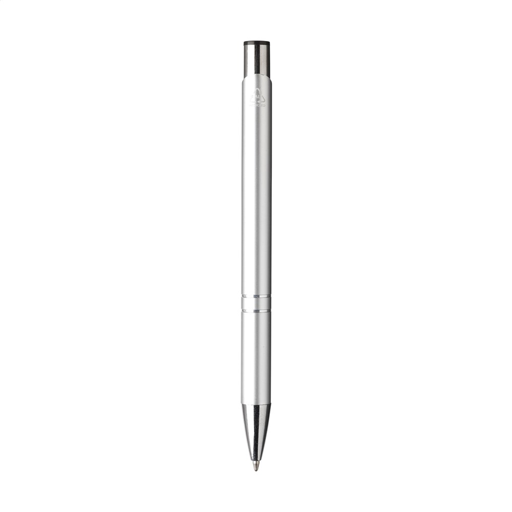 WoW! Blauwschrijvende balpen gemaakt van gerecycled aluminium. De houder is afgewerkt met een mooie glanzende, metallic look finish. Met metalen clip. Door het gebruik van gerecycled aluminium worden er minder nieuwe grondstoffen gebruikt tijdens de productie van dit product. Dit betekent minder energieverbruik en minder gebruik van water.