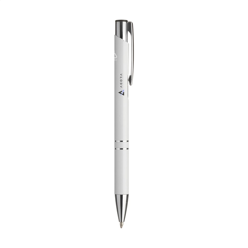 WoW! Blauwschrijvende balpen gemaakt van gerecycled aluminium. De houder is afgewerkt met een mooie glanzende, metallic look finish. Met metalen clip. Door het gebruik van gerecycled aluminium worden er minder nieuwe grondstoffen gebruikt tijdens de productie van dit product. Dit betekent minder energieverbruik en minder gebruik van water.
