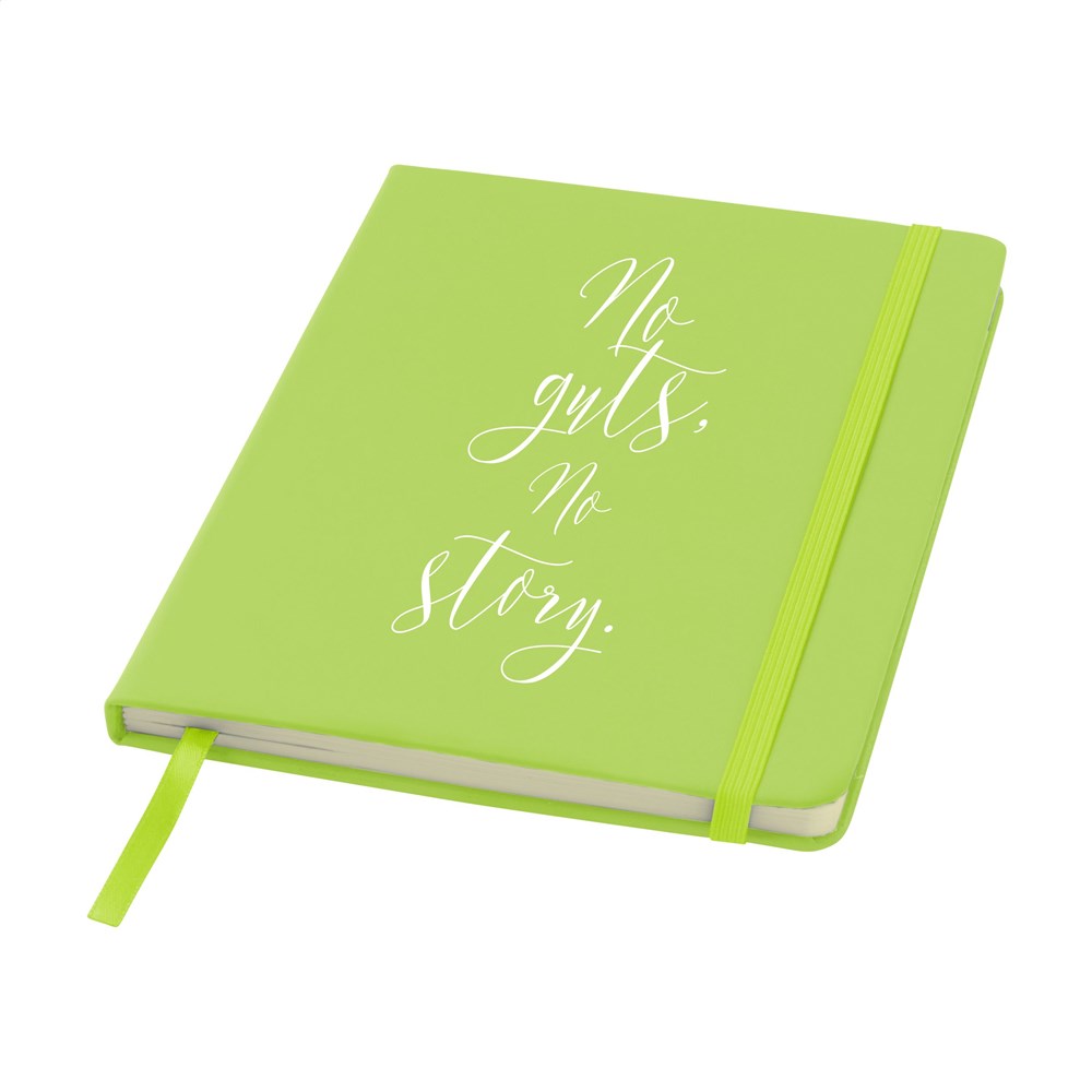 Praktisch notitieboekje in A5-formaat. Met harde PU cover, ca. 80 vel/160 pagina's crèmekleurig, ongelinieerd FSC Mix papier (70 g/m²), elastische sluiting en leeslint.