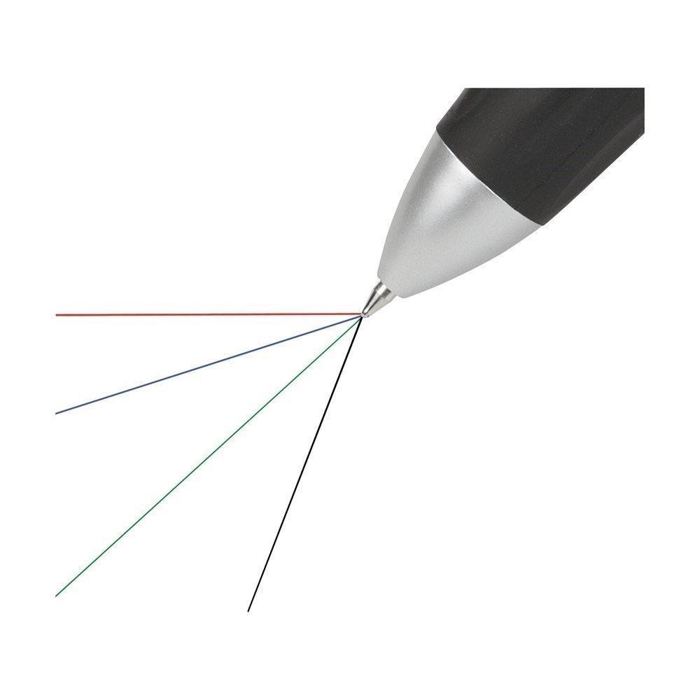 4-kleurenbalpen met gripvast, rubberen voorstuk. Voorzien van een blauwe, groene, rode en zwarte vulling.