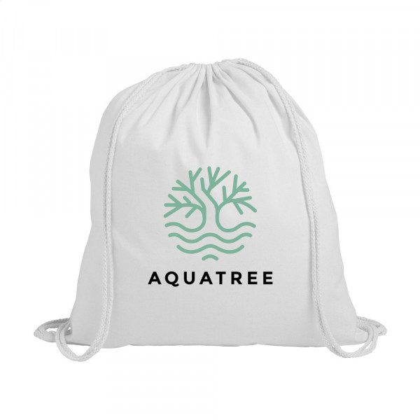 Rugzak van 100% katoen (120 g/m²). Met aanrijgkoorden. Inhoud ca. 8 liter.