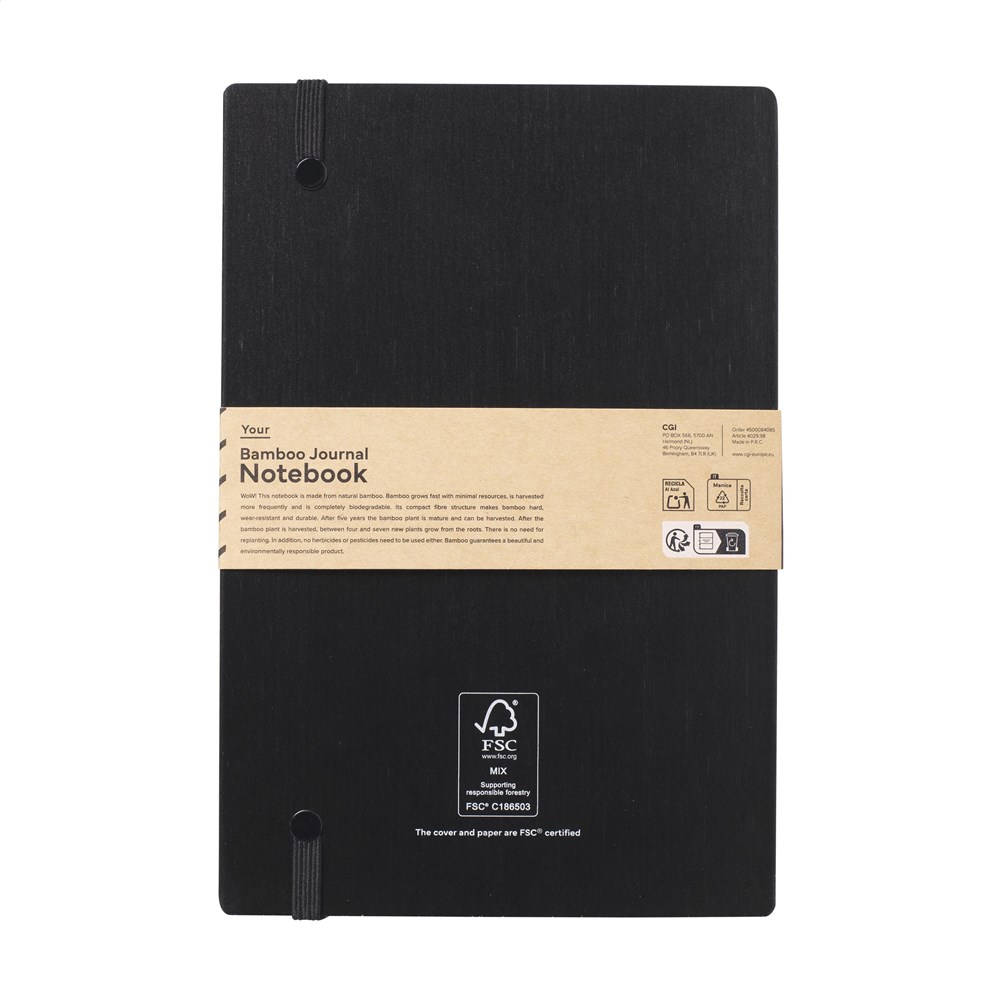 WoW! A5-formaat notitieboek met stevige, zwartgelakte FSC 100% gecertificeerd bamboe hardcover....meer