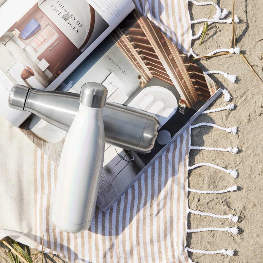 Sagaform's meest stijlvolle fles in het zwart. De geavanceerde vacuümconstructie heeft twee stalen wanden en een koperen coating om superieure isolatie te bieden zonder dat er condensatie plaatsvindt. De fles kan dranken tot 24 uur ijskoud of tot 12 uur warm houden.