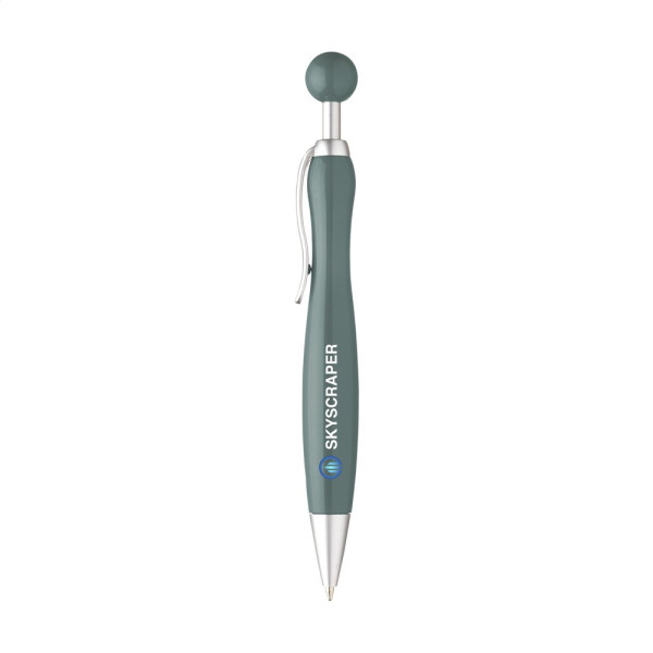 Blauwschrijvende balpen met opvallende drukknop.