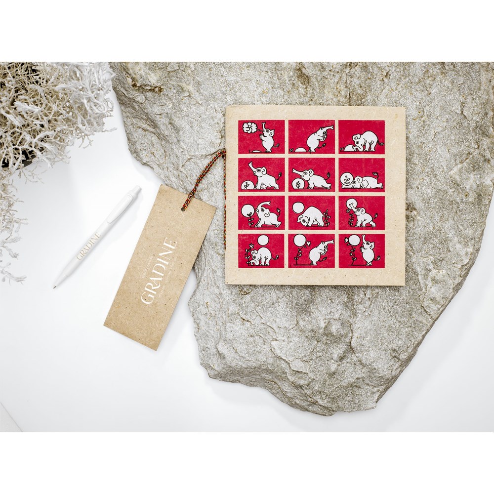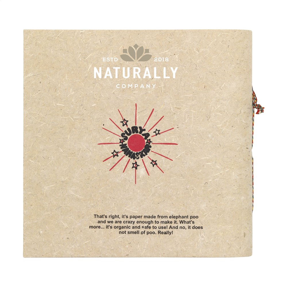 WoW! Organisch notitieboekje met een cover en papier gemaakt van olifantenpoep. Het notitieboekje heeft een 400 grams cover en bevat ca. 96 vel/192 pagina's gerecycled, houtvrij, blanco papier (100 g/m²). Het is veilig te gebruiken en het ruikt uiteraard niet naar poep. De voordelen van het gebruik van dit mestpapier: minder ontbossing, minder gebruik van chemicaliën bij de natuurlijke productie, hergebruik van water na de papierproductie en minder afval. Eén olifant produceert elke dag 500 kg mest, genoeg om 1000 vellen A4-papier, 20 tijdschriften of 150 draagtassen te maken. Optioneel: Per stuk met kraft sleeve.