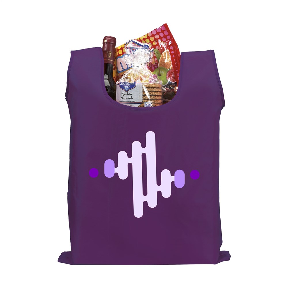 Opvouwbare winkeltas van 190T polyester. In etui met drukknoop en karabijnhaak. Afm. uitgevouwen...meer