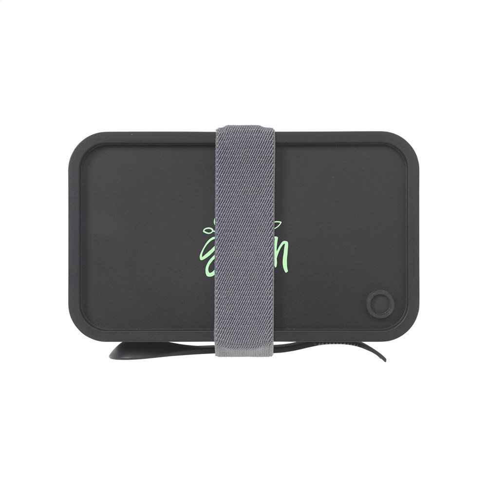Lunchbox van PP kunststof. Het perfect sluitend deksel heeft een siliconen afsluitring en een ventilatieopening met siliconen dop. Inclusief 3-in-1 vork, lepel en mes. Met uitneembare verdeler en sluitelastiek. Deze box mag in de koelkast en is dus ook te gebruiken als luchtdichte vershoudbox. Dit product bevat geen melamine. Geschikt voor gebruik in de magnetron en diepvries.
