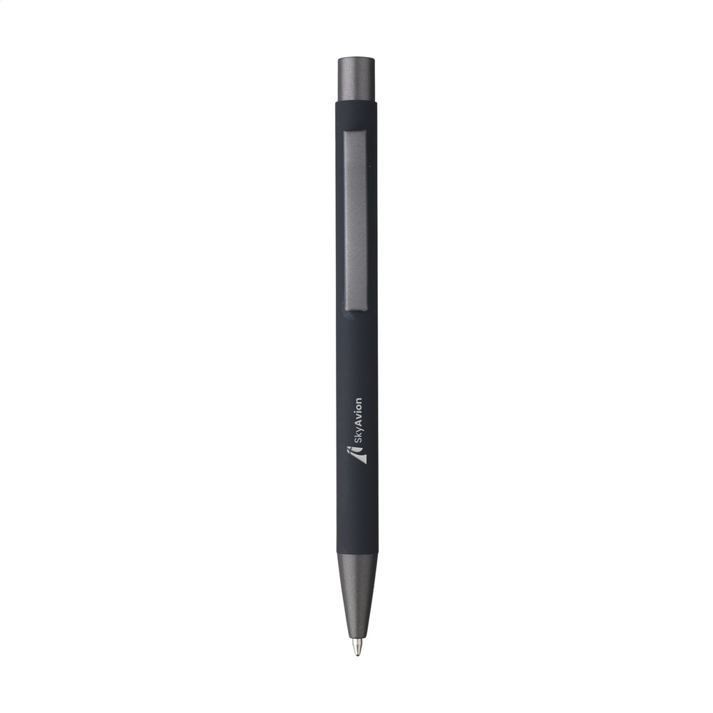 WoW! Blauwschrijvende balpen gemaakt van gerecycled aluminium. De houder is afgewerkt met een mooie rubberised finish. Met stevige metalen clip en kunststof puntstuk en drukknop. Door het gebruik van gerecycled aluminium worden er minder nieuwe grondstoffen gebruikt tijdens de productie van dit product. Dit betekent minder energieverbruik en minder gebruik van water.