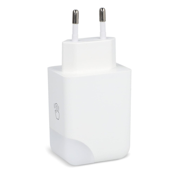 Deze GaN-stroomadapter van 65 W is ontworpen om laptops, tablets en smartphones snel en efficiënt op te laden. Hij beschikt over een USB-A poort met maximaal 18W vermogen en een Type-C poort met maximaal 65W vermogen. Wanneer beide poorten tegelijkertijd worden gebruikt, levert hij maximaal 9 W vermogen per poort. Het slimme oplaadindicatielampje geeft niet alleen de oplaadstatus aan, maar gaat ook uit als het apparaat volledig is opgeladen en kan handmatig worden uitgeschakeld door het aan te raken. Het compacte en praktische ontwerp maakt hem gemakkelijk in gebruik. Het is gemaakt van brandwerend gerecycled plastic, wat zorgt voor veiligheid en duurzaamheid. Of je nu thuis, op kantoor of onderweg bent, deze adapter is een betrouwbare stroomoplossing voor al je apparaten.