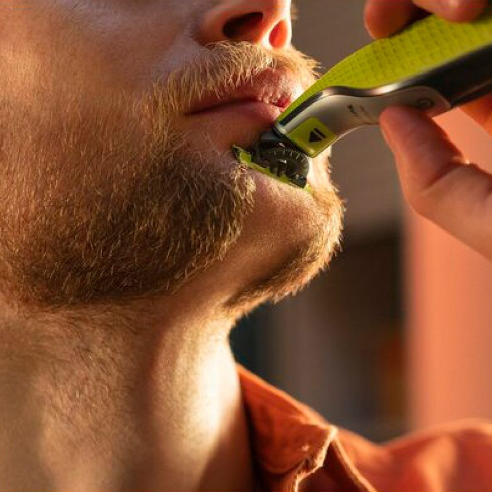 De OneBlade 360 trimt, stileert en scheert elke haarlengte gemakkelijker dan ooit. Style zelfs de moeilijkst bereikbare gebieden met minder bewegingen. Meerdere stappen en gereedschappen zijn niet langer nodig. OneBlade regelt alles. Met contourvolgende technologie, dubbel beschermingssysteem en 360 Blade.