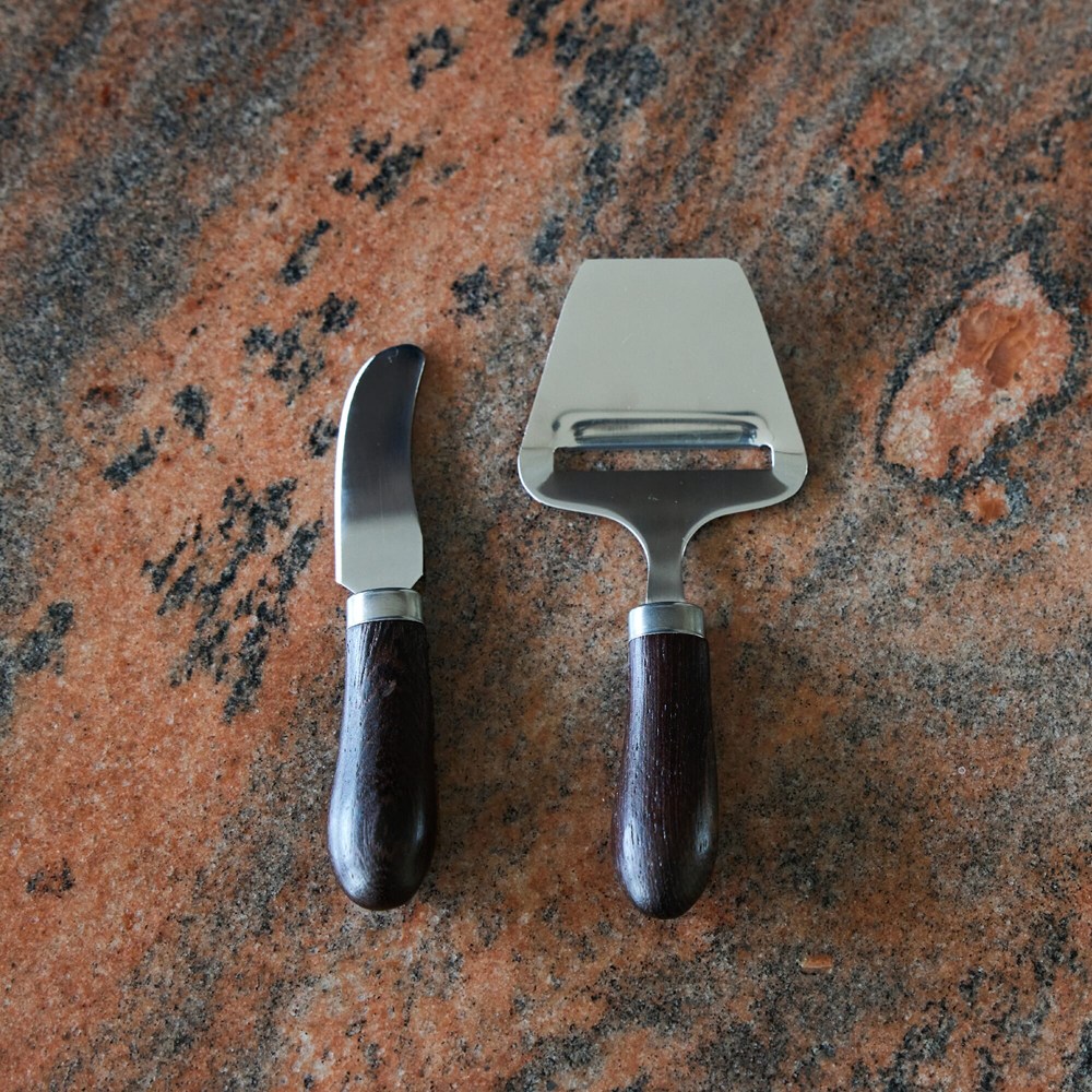 Een kaassschaaf en botermes uit de serie Astrid, uitgevoerd in een combinatie van roestvrij staal en mooi chocoladebruin wengéhout. De combinatie is spannend met een stoer tintje. De set wordt geleverd in een giftbox.