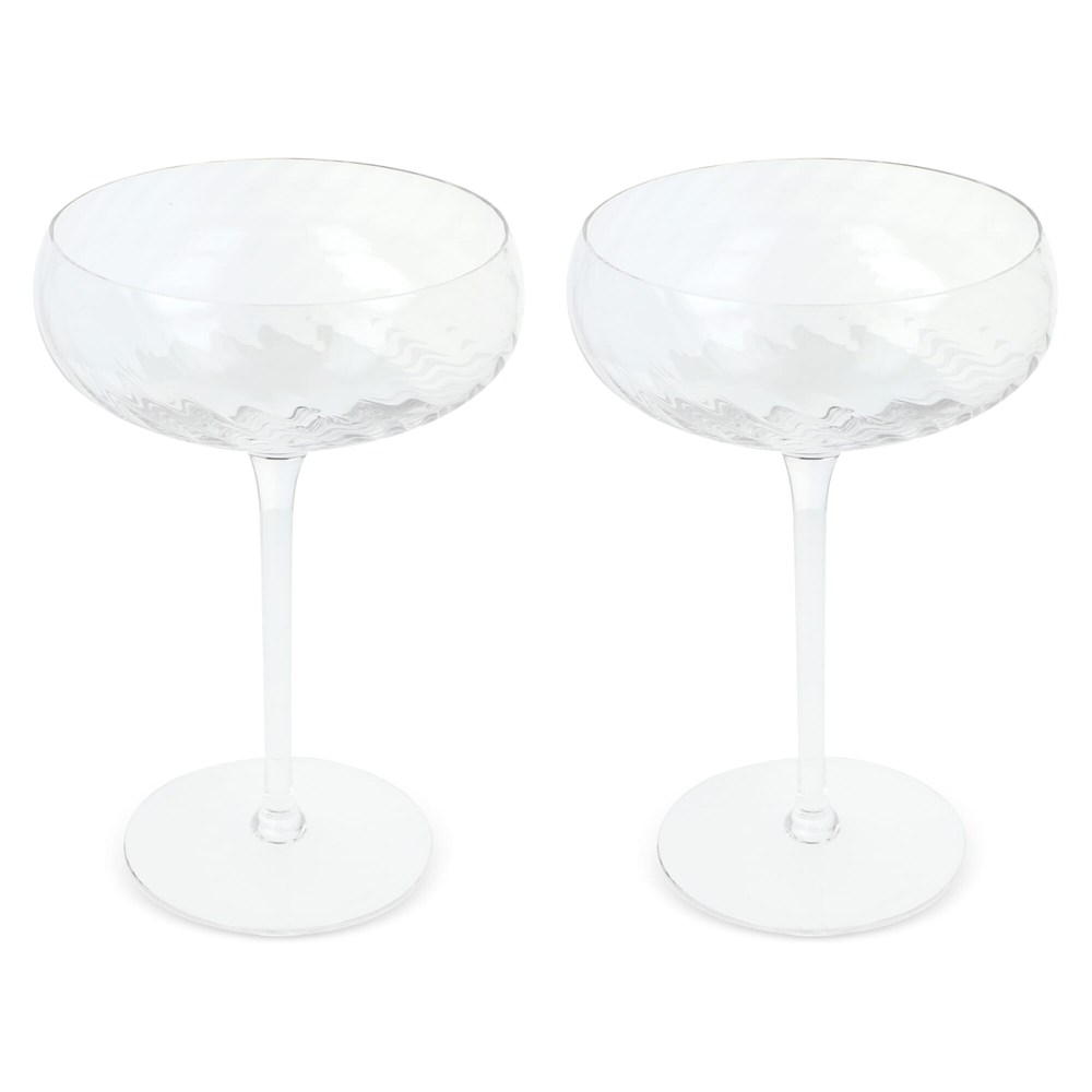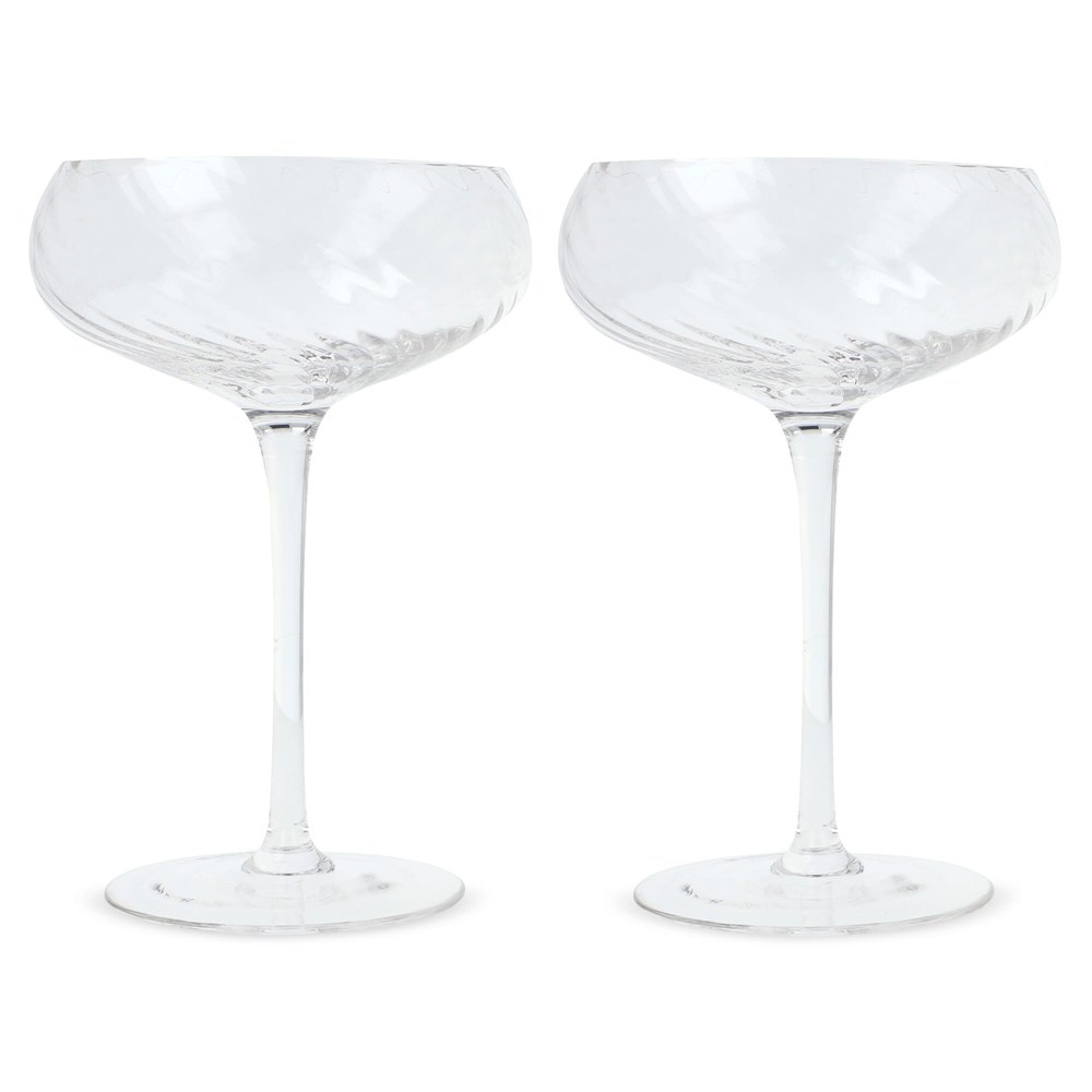 Deze luxe Opacity Champagne coupes zijn gemaakt van helder glas met een prachtig gesponnen glaspatroon. De coupes zijn ook perfect te gebruiken voor dessets of likeur. Het gebruiken van de coups, garanderen een feestelijker gevoel. Een ontwerp weerspiegeld het contrast tussen luxe en eigenzinnigheid. Ontwerp door Studio Byon. Geleverd als set in Giftbox.