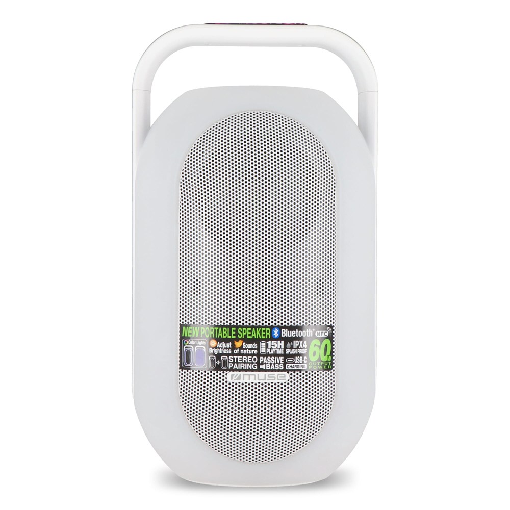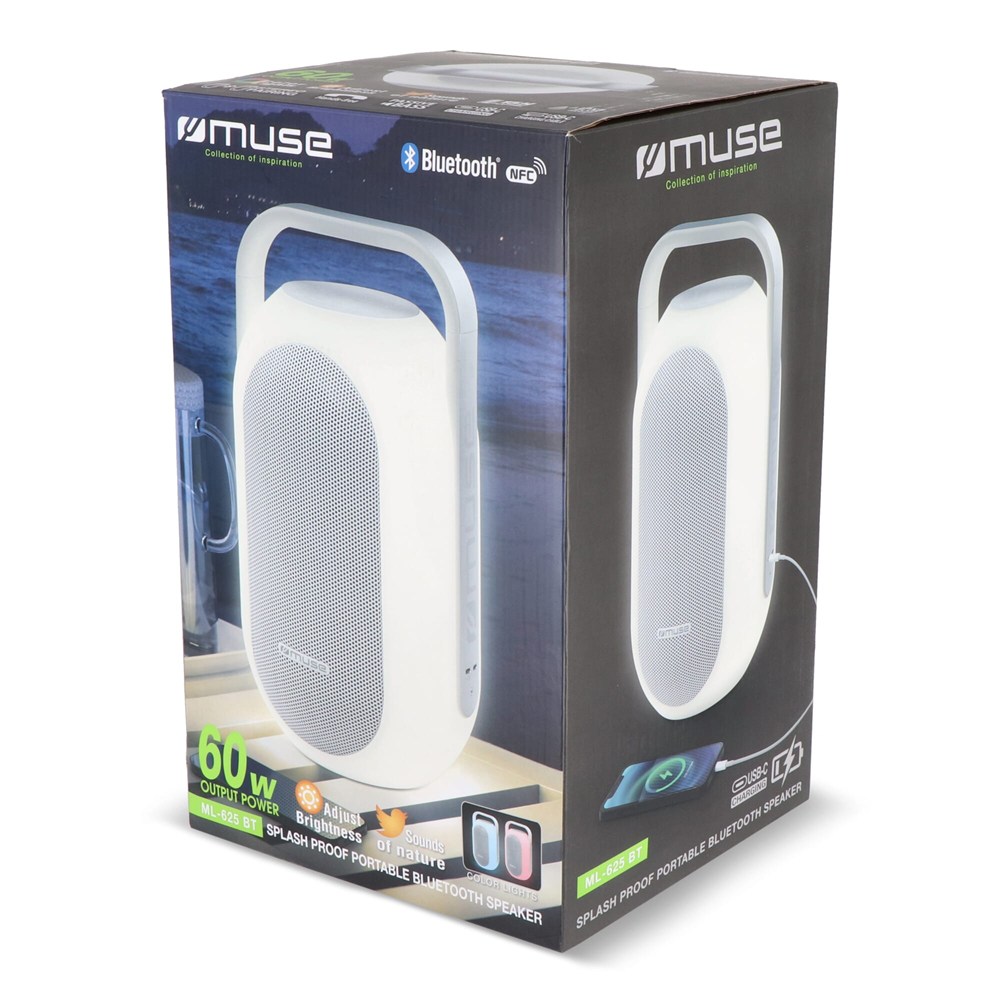De Muse Ambient Light Speaker, is de perfecte speaker voor elke gelegenheid. Of je nu thuis ontspant, in de tuin bent of een strandfeest hebt, deze splash-proof speaker levert krachtig geluid met een vermogen van 60W en biedt eenvoudige NFC-koppeling voor moeiteloze verbinding. Met zijn spatwaterdichte IPX4-ontwerp is de Muse Ambient Light Speaker ideaal voor buitenactiviteiten. Het meerkleurige Ambient Light zorgt voor een unieke sfeer door kleuren aan te passen of automatisch op de muziek te laten reageren. Stream draadloos via Bluetooth en geniet tot 10 uur van je favoriete nummers. Daarnaast beschikt de speaker over handige extra's zoals handsfree bellen en 5 rustgevende natuurgeluiden. Met de USB-C-oplaadpoort kun je zowel de speaker als externe apparaten eenvoudig opladen. Of je nu een feestje viert of tot rust komt, de Muse Ambient Light Speaker zorgt voor het perfecte geluid en sfeer.