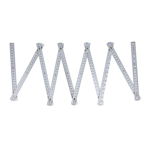 Duimstok met tien delen en een totale lengte van 2 meter. Duurzaam en draagbaar, ideaal voor zowel professionele als doe-het-zelf projecten. De liniaal heeft een schokbestendige coating en extra sterke, roestvrijstalen scharnieren. Met vergrendelingshoek van 180°. CE-gecertificeerd en nauwkeurigheidsklasse 3. Gemaakt in Europa.