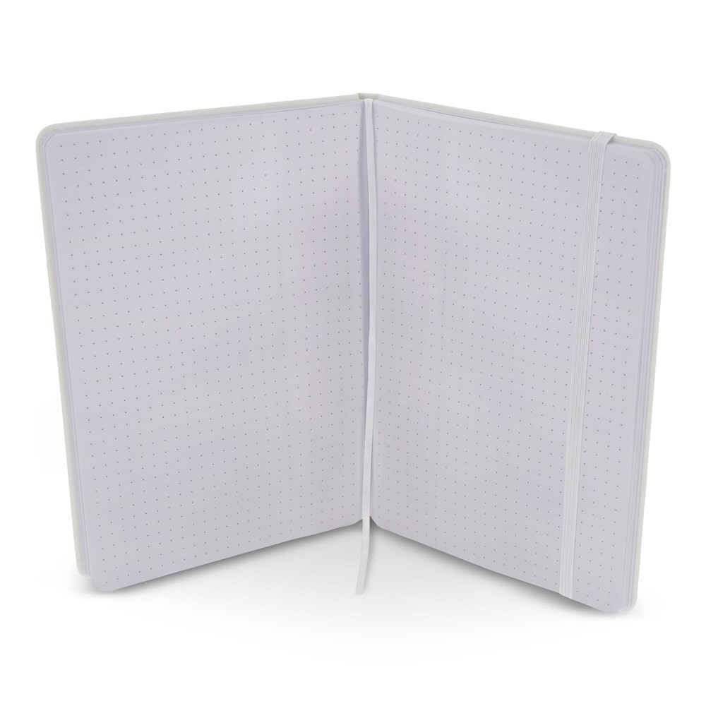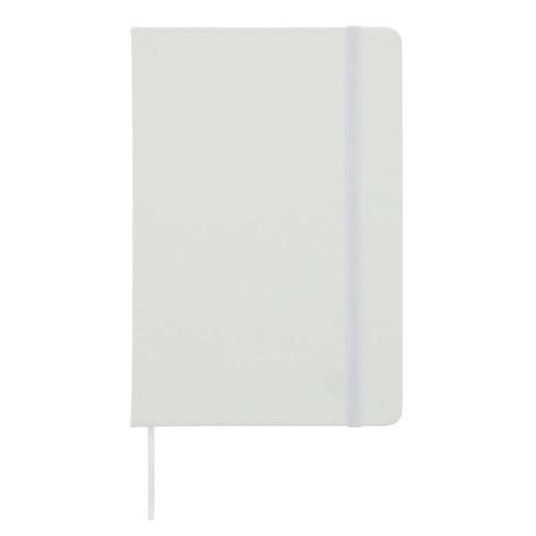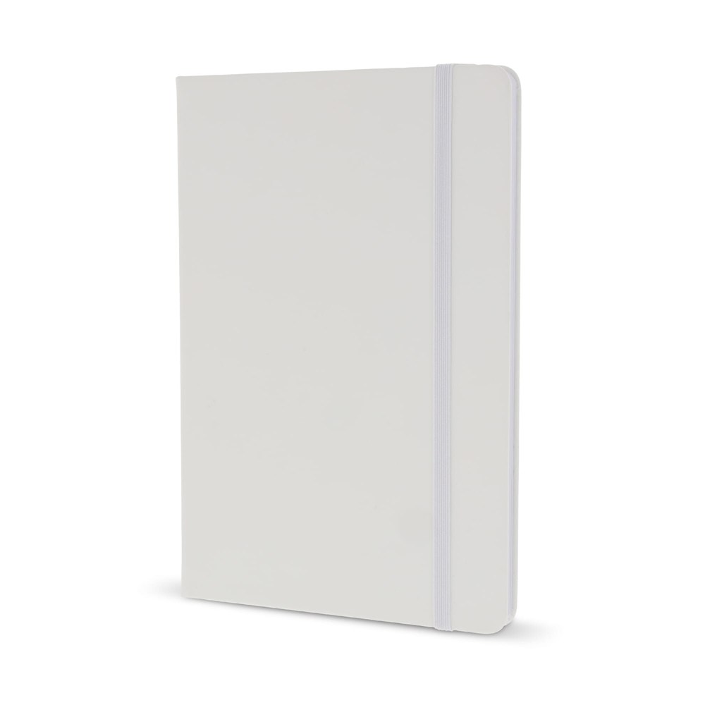 Klassiek PU notitieboek met bijpassende elastische band en lint. 96 vellen wit FSC-papier met puntraster.